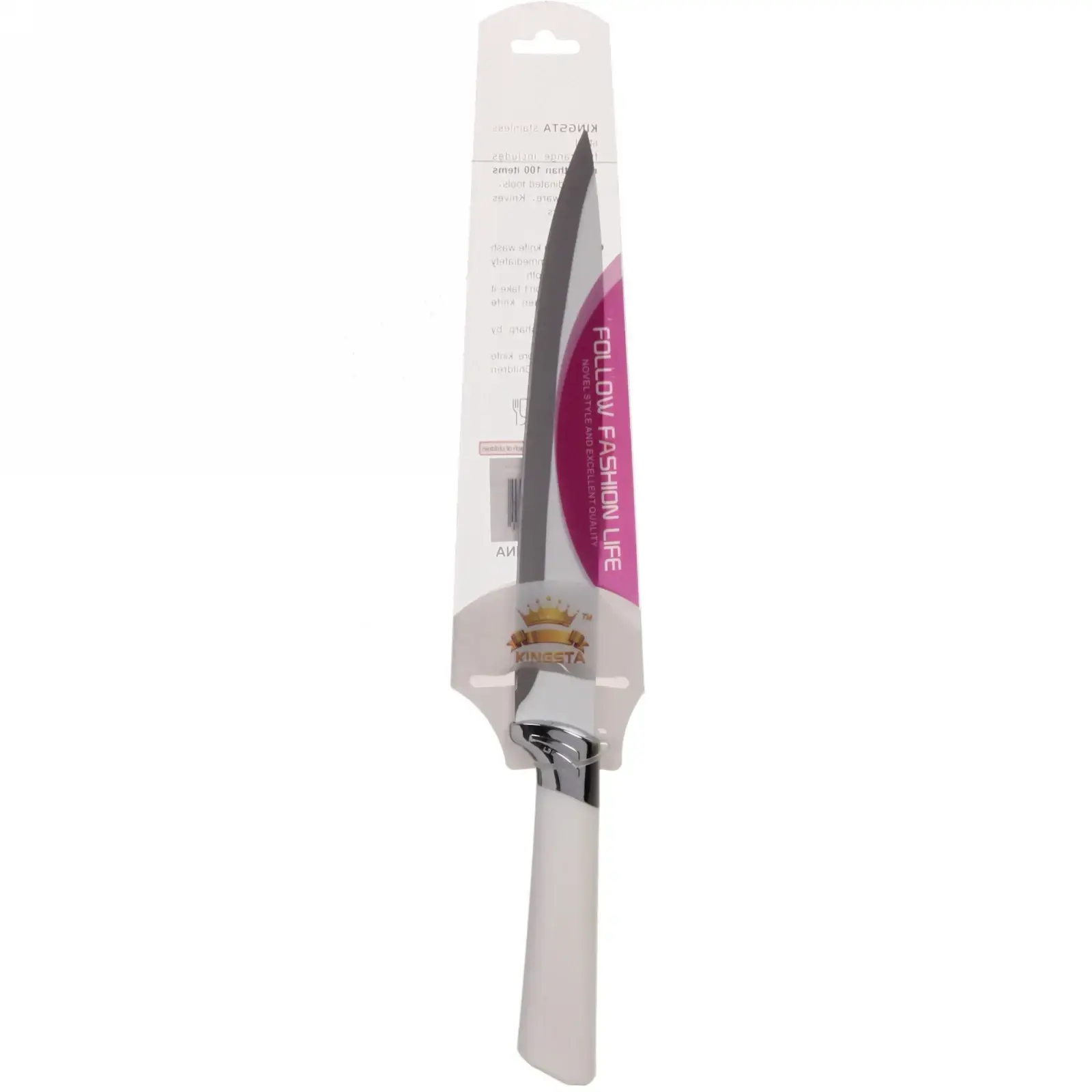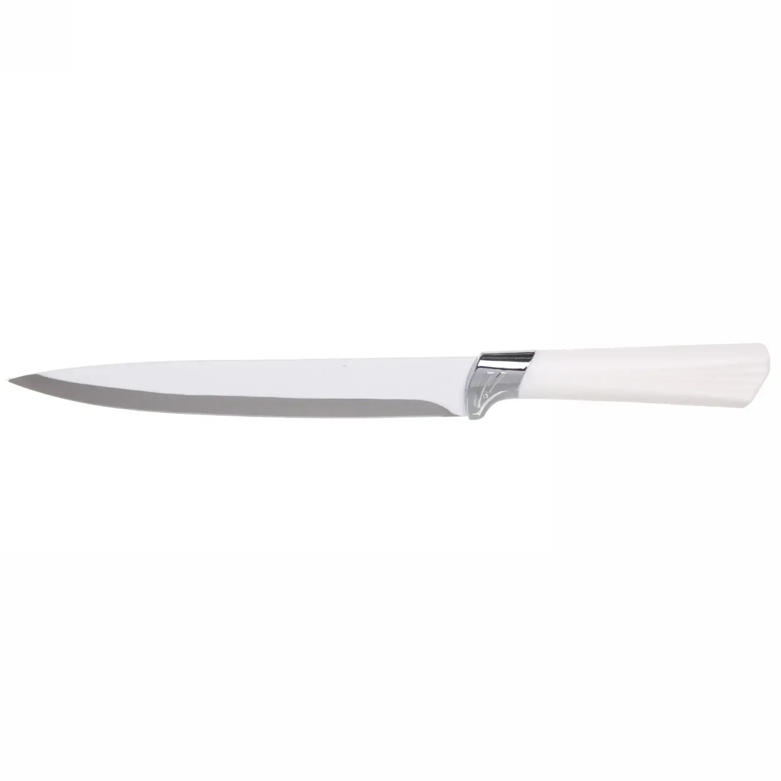 Нож выполнен из высококачественной нержавеющей стали, что гарантирует долговечность и надежность. Белая ручка из пластика с рифленой текстурой не только эстетична, но и практична. Этот нож станет отличным дополнением к вашей кухонной утвари и поможет вам готовить с удовольствием.