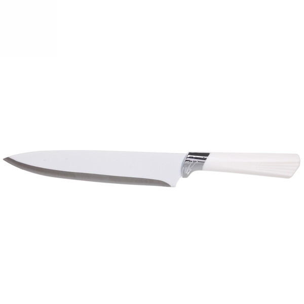 Этот поварской нож длиной 21 см станет незаменимым инструментом для приготовления пищи. Его гладкий клинок из нержавеющей стали обеспечивает отличную резку и долговечность, а белая рифлёная ручка гарантирует комфортный захват и удобство в использовании. Нож идеально подходит как для профессиональных поваров, так и для домашних кулинаров, которые ценят качество и практичность.