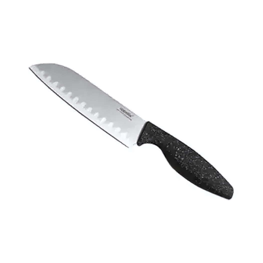 Нож сантоку "Гамма" сочетает остроту профессионального инструмента и удобство повседневного использования. Эргономичная рукоять с шероховатой поверхностью обеспечивает уверенный хват даже при работе с влажными продуктами.