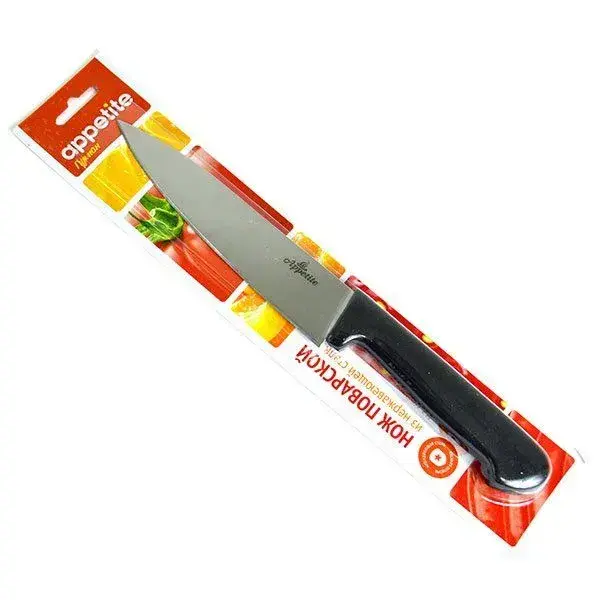 Поварской нож «Гурман» 15см, нержавеющая сталь, черная ручка, блистер