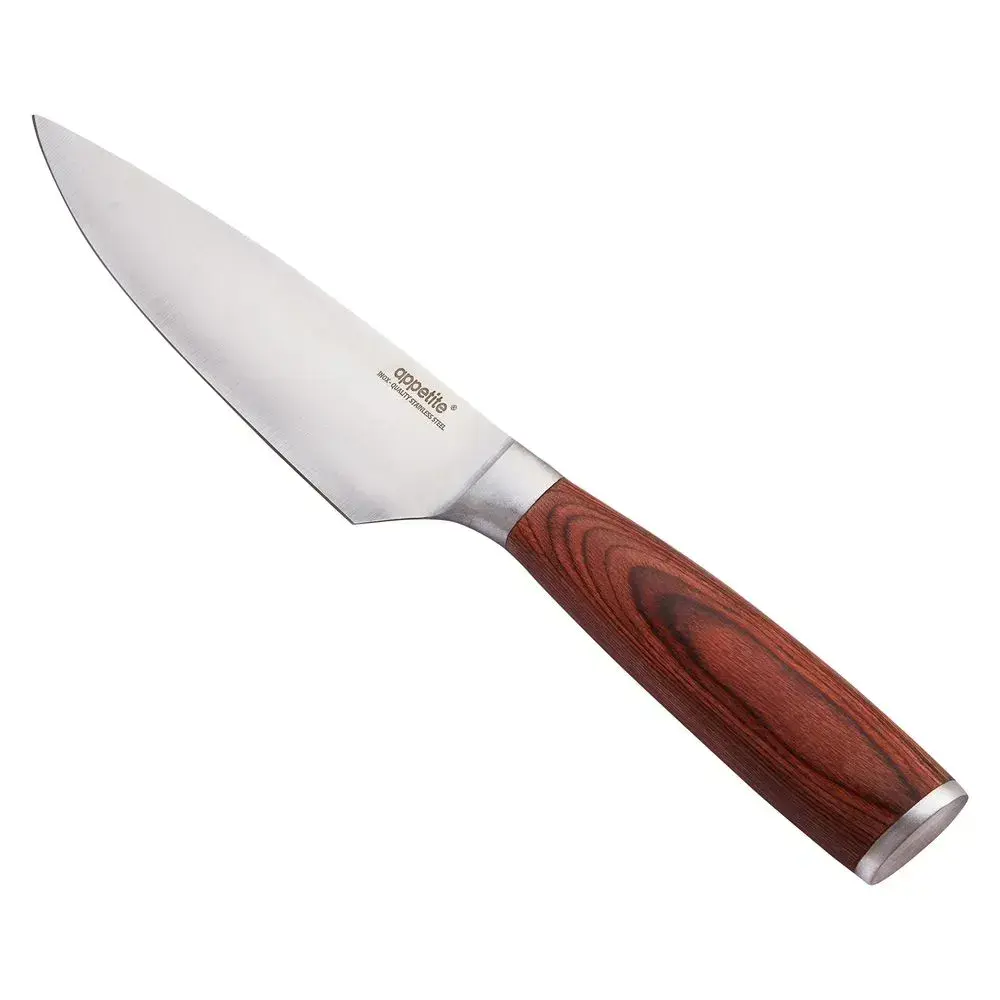 Толщина обуха 2 мм гарантирует прочность, а оптимальный изгиб клинка (18°) позволяет выполнять филигранные нарезки. Длина лезвия 15 см идеальна для обработки средних и крупных продуктов.
