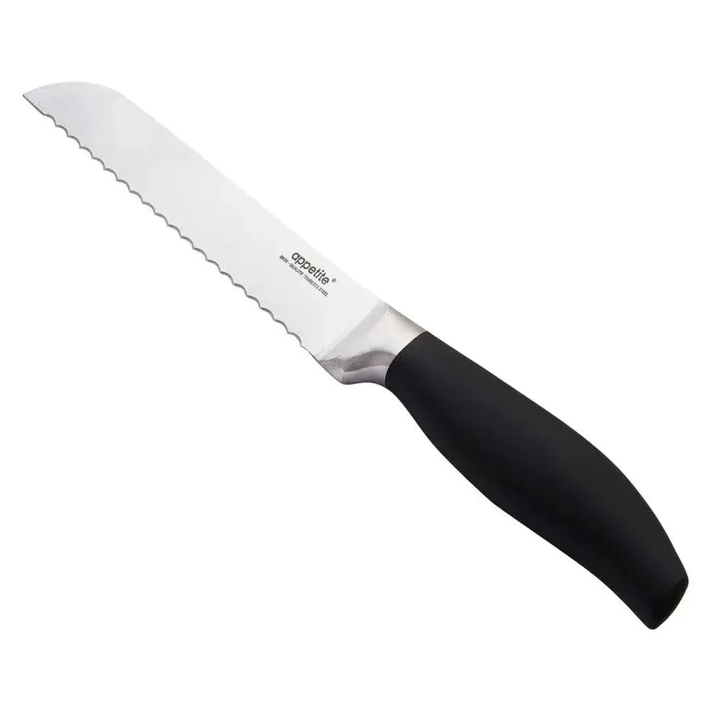 Нож для хлеба Appetite 15см, нержавеющая сталь, эргономичная рукоять, цвет чёрный