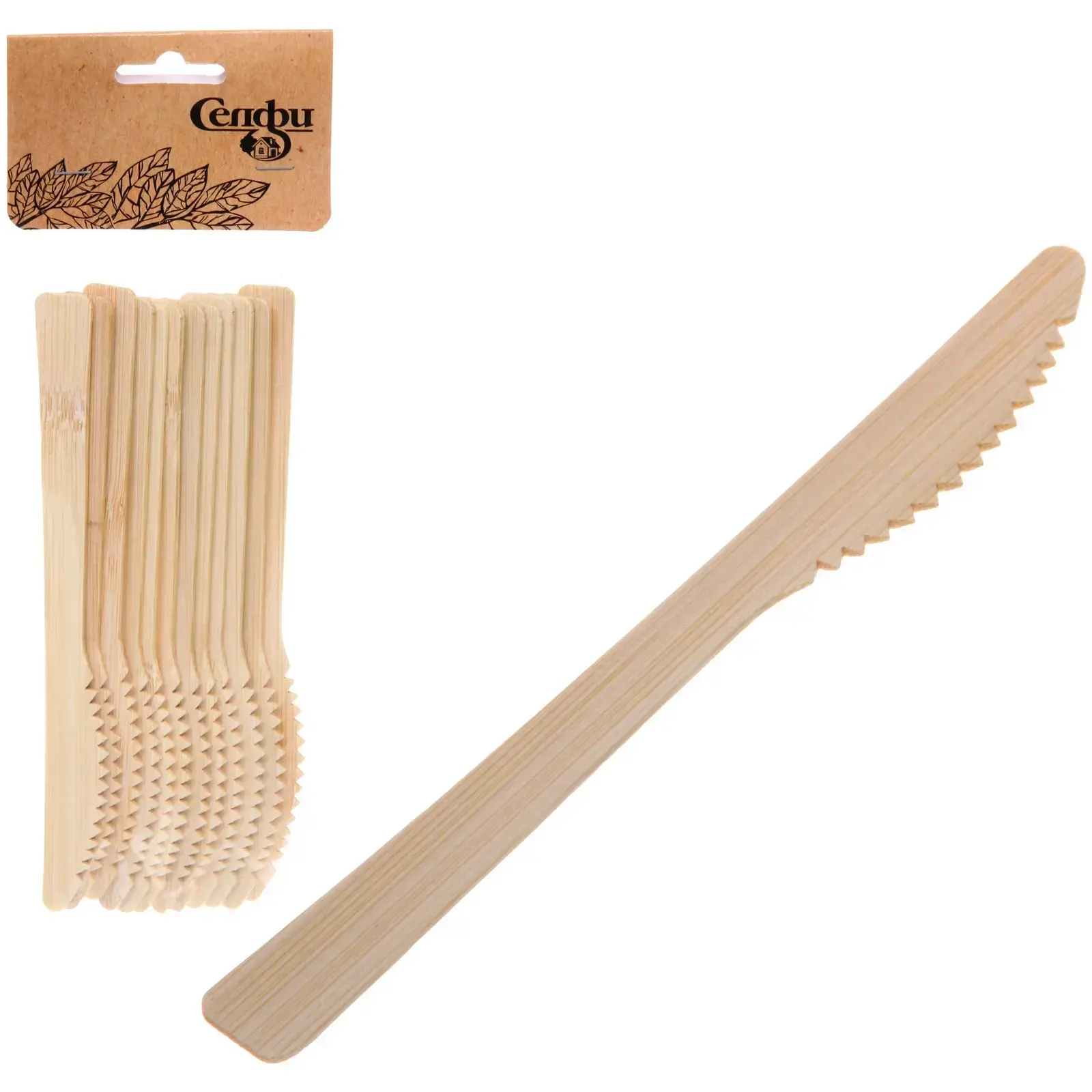 Деревянные ножи 'ЭкоСтиль' отличаются продуманным дизайном с зубчатым краем, что обеспечивает удобство использования. Благодаря натуральному материалу они не оказывают вредного воздействия на здоровье и экологию.