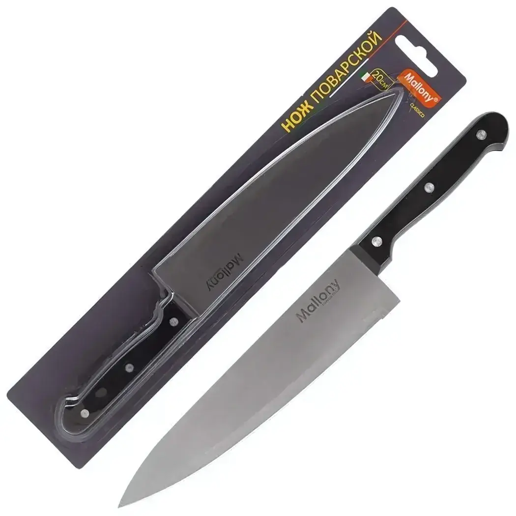 Нож «CLASSICO MAL-01CL» сочетает эргономичный дизайн и функциональность, делая процесс нарезки комфортным и безопасным. Идеально сбалансированное лезвие длиной 20 см подходит для мяса, овощей и зелени.
