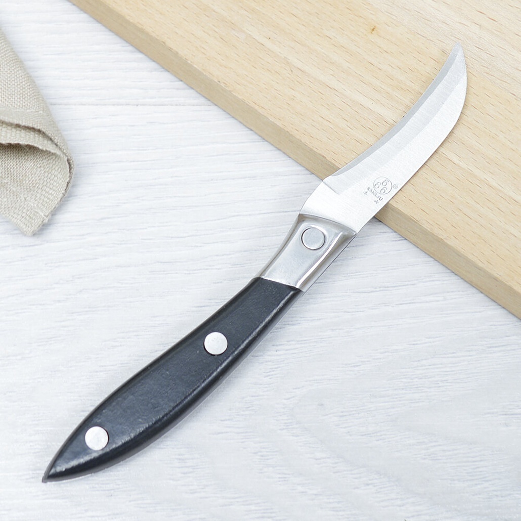 Этот нож подходит для нарезки мяса, овощей и фруктов. Его изогнутое лезвие позволяет легко справляться с различными задачами, а гладкая рукоятка обеспечивает надежный и удобный захват. Нож идеально подходит как для профессиональных поваров, так и для домашних кулинаров, которые хотят повысить качество своих блюд.