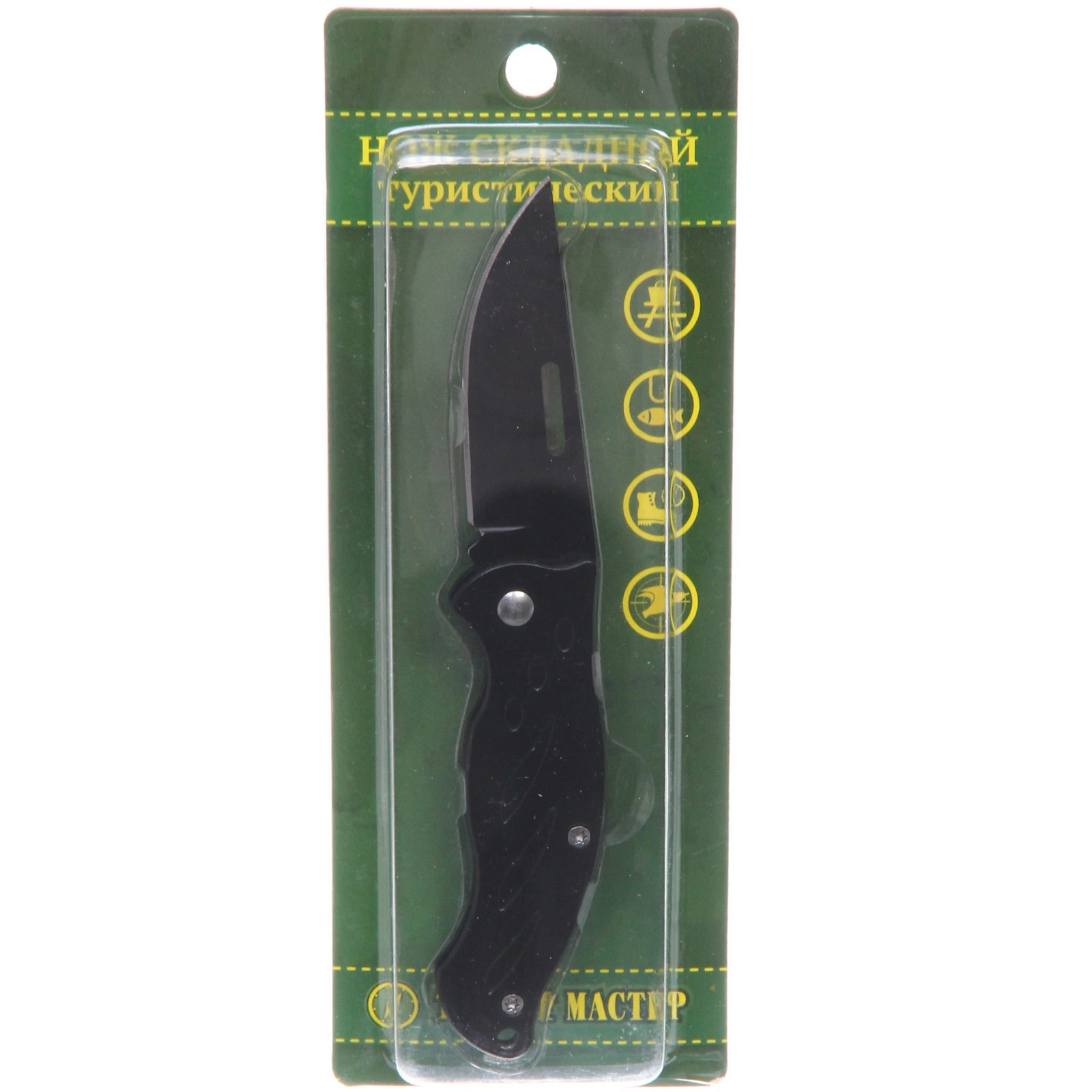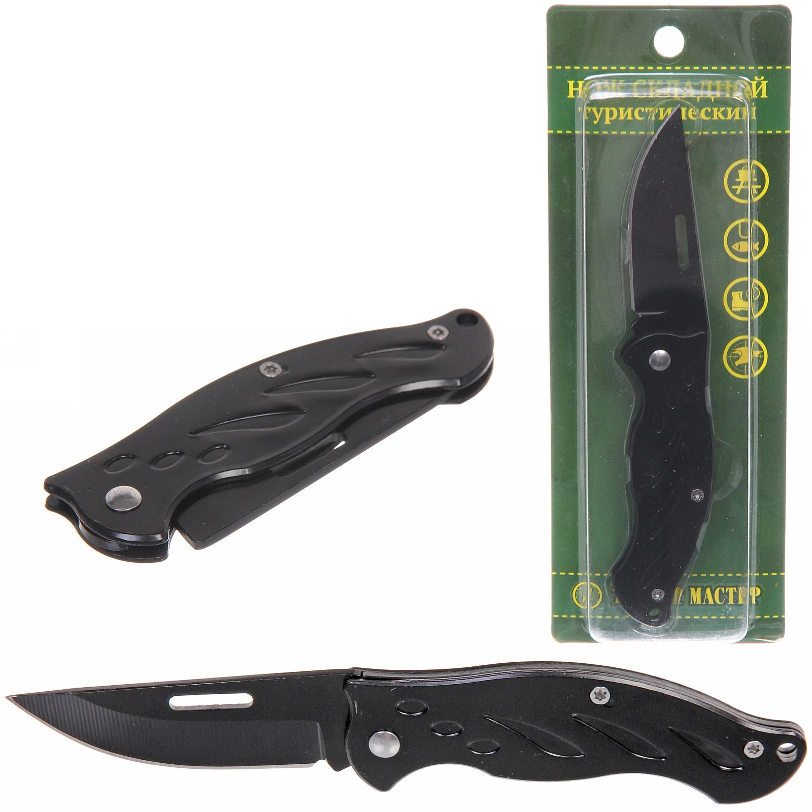 Нож складной «Туристмастер», универсальный, металл, 15 см, черный, эргономичная ручка, блистер