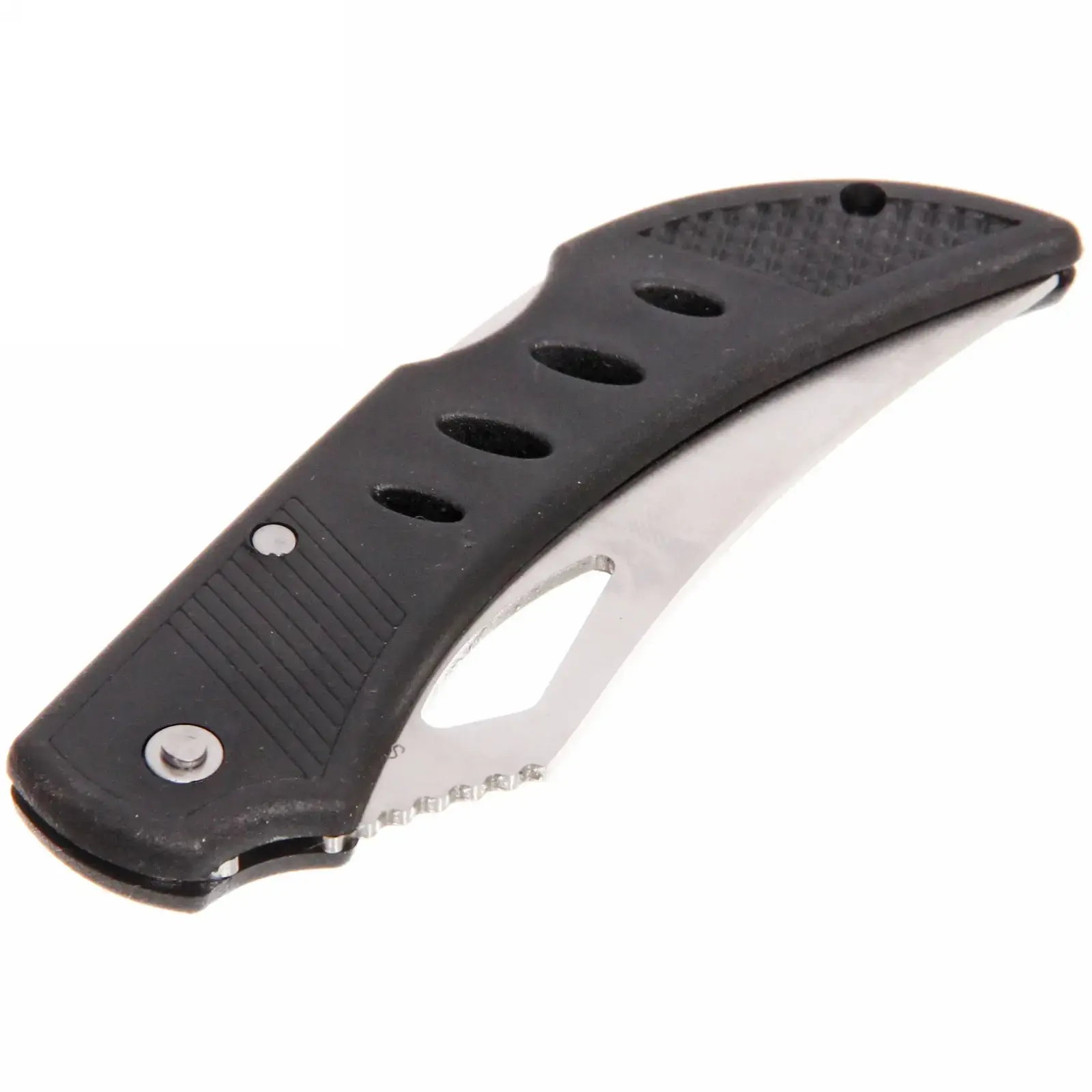 Рукоятка ножа выполнена из прочного пластика, что делает его легким и удобным в использовании. Нож имеет эргономичную форму, что позволяет комфортно держать его в руке. Благодаря компактным размерам, он не займет много места в вашем снаряжении. Этот нож — отличный выбор для тех, кто ценит качество и функциональность.