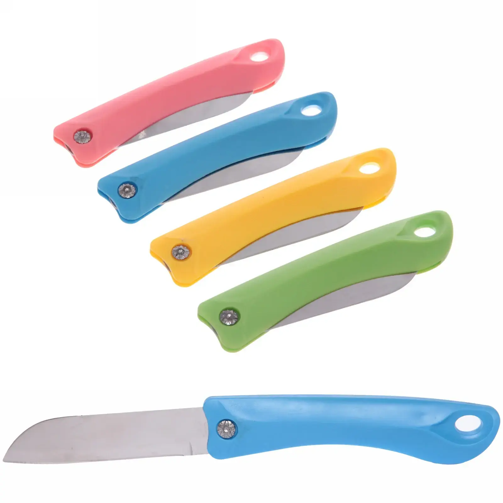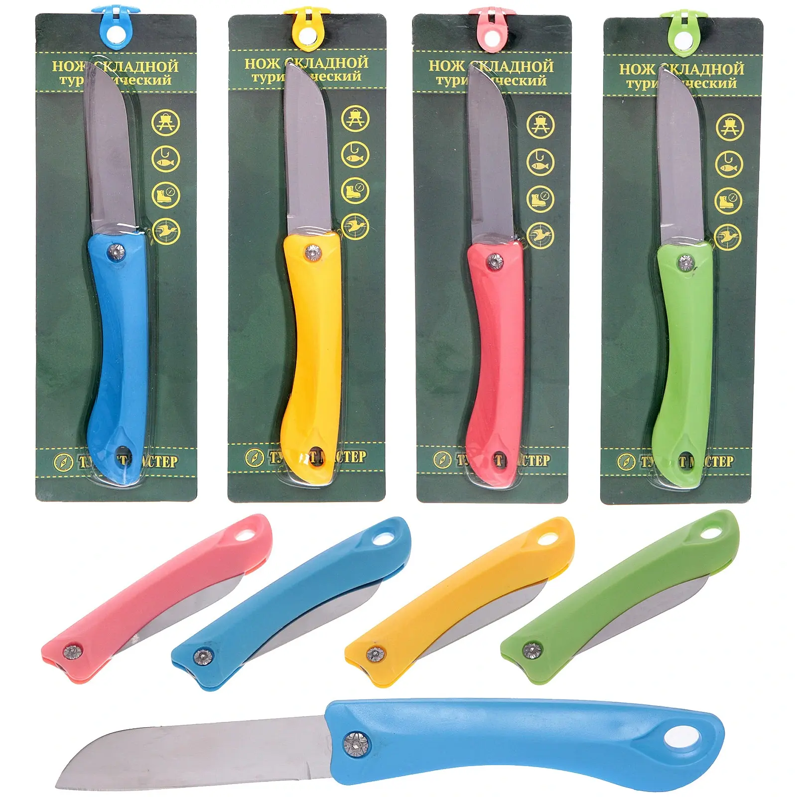 Нож оснащен острым металлическим лезвием, которое гарантирует долговечность и надежность. Пластиковая рукоятка обеспечивает комфортный захват и предотвращает скольжение в руках. Яркие цвета рукояток делают нож стильным и легко заметным, что особенно важно в условиях природы.