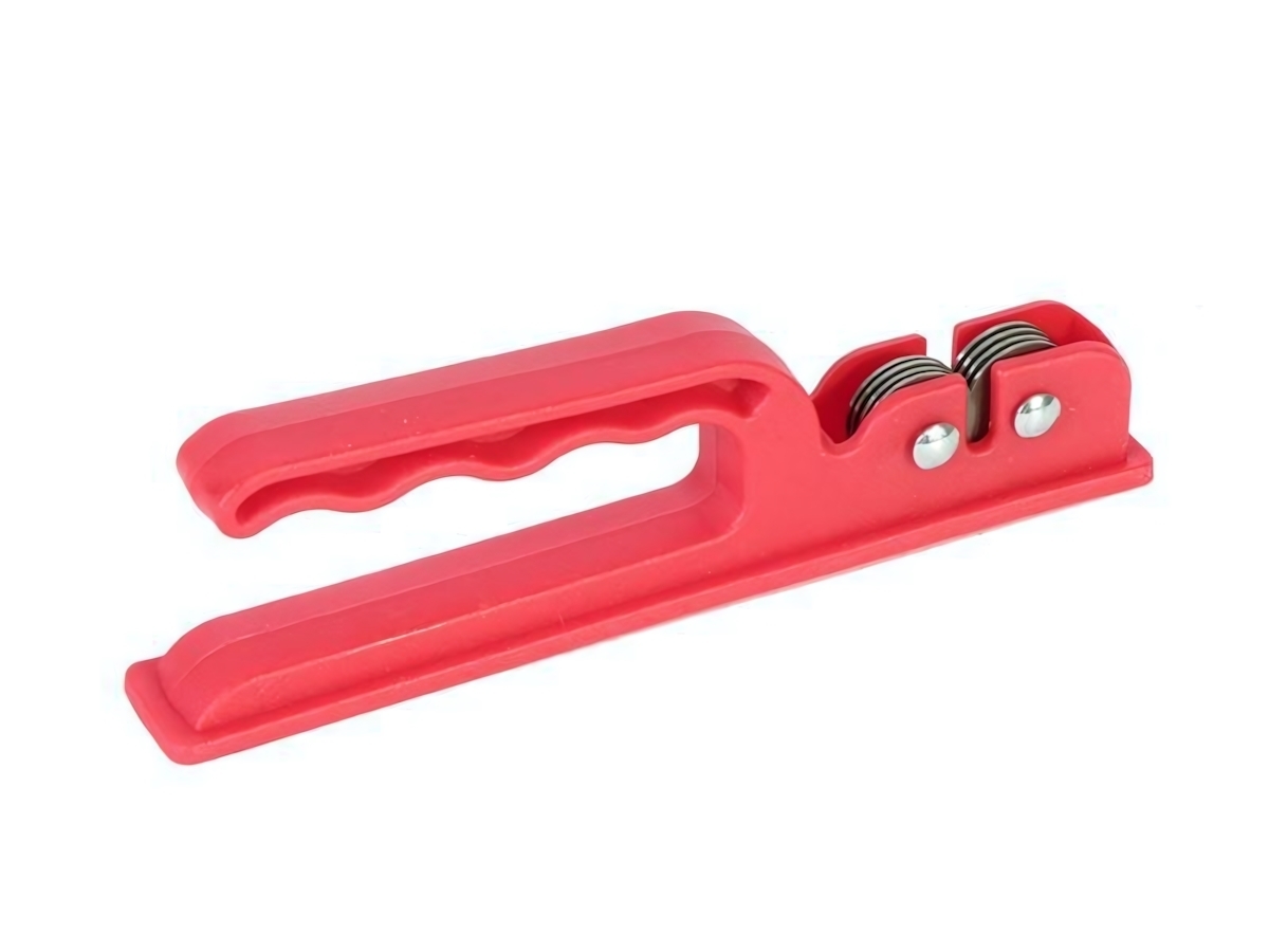 Ножеточка пластиковая с металлическими дисками, эргономичная ручка, красный цвет, Польша