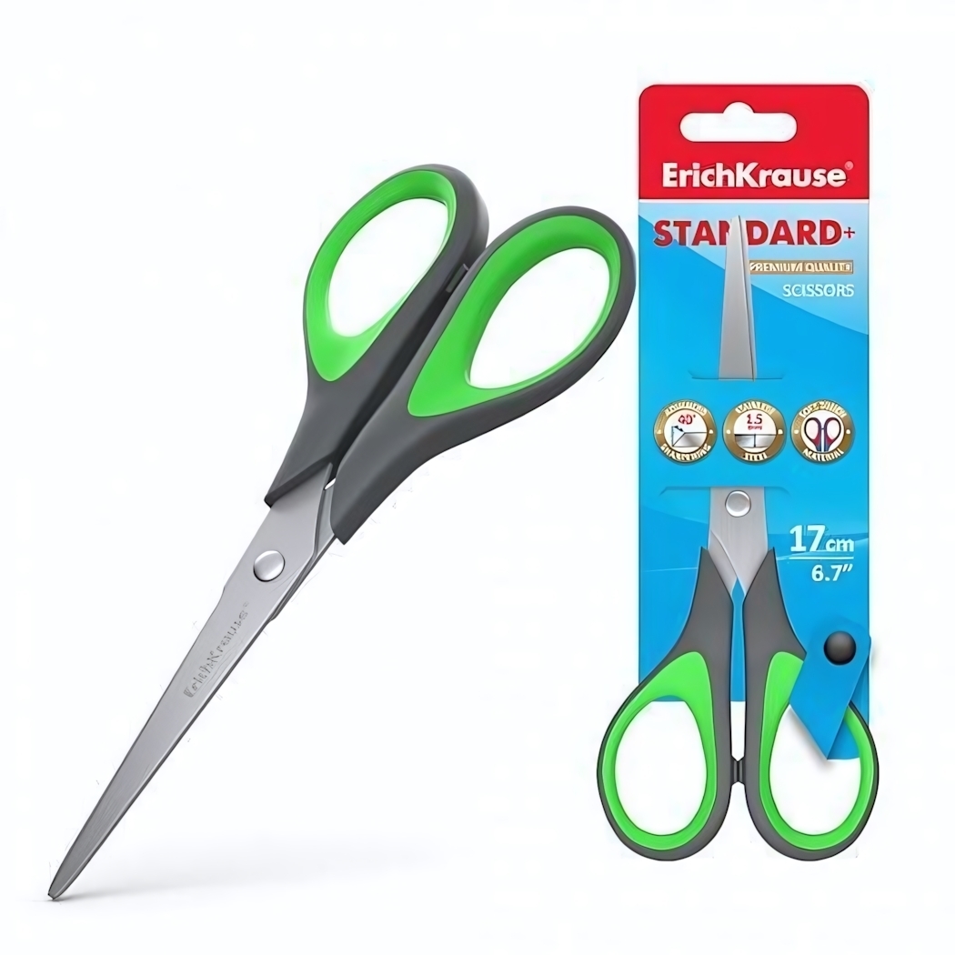Школьные ножницы 'STANDARD+' от ErichKrause созданы для безопасной и эффективной работы учеников всех возрастов. Уникальная двойная заточка лезвий обеспечивает легкость резки даже плотных материалов.