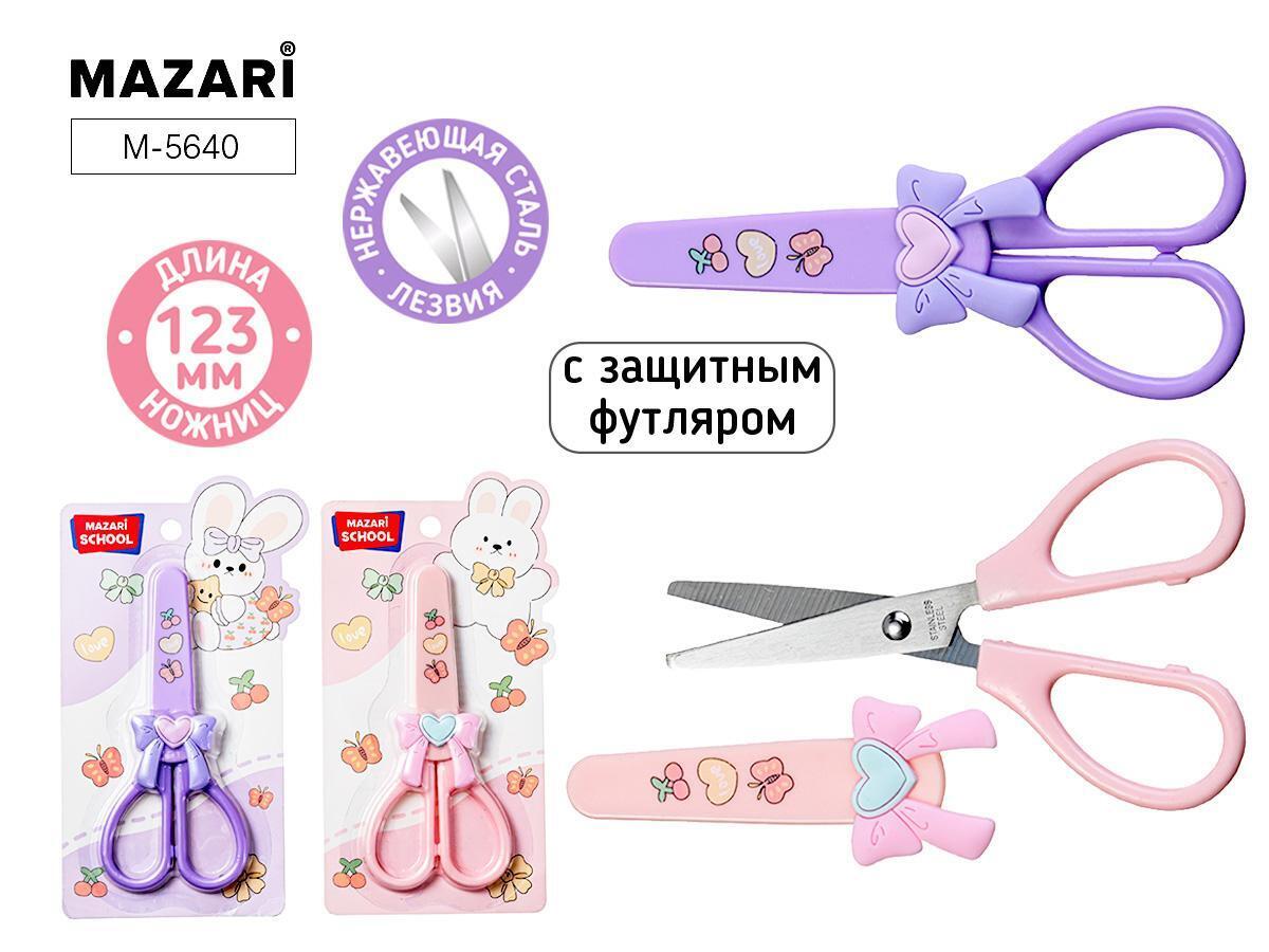 Ножницы детские "Бантики" 123мм, нержавеющая сталь, защитный футляр, пластиковые ручки, цвет в ассортименте