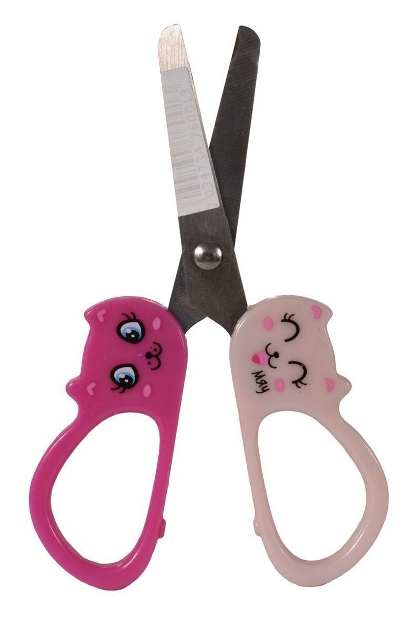 Детские ножницы 'Киска' созданы специально для маленьких рук и больших идей. Закругленные концы лезвий обеспечивают безопасное использование во время занятий творчеством.