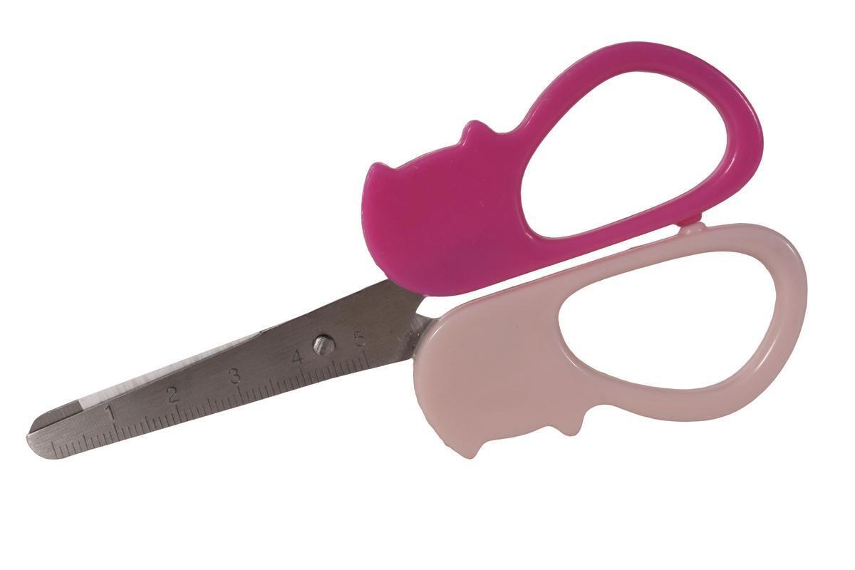Ножницы детские 'Киска' 12см, закругленные концы, пластик/металл, розовый/белый