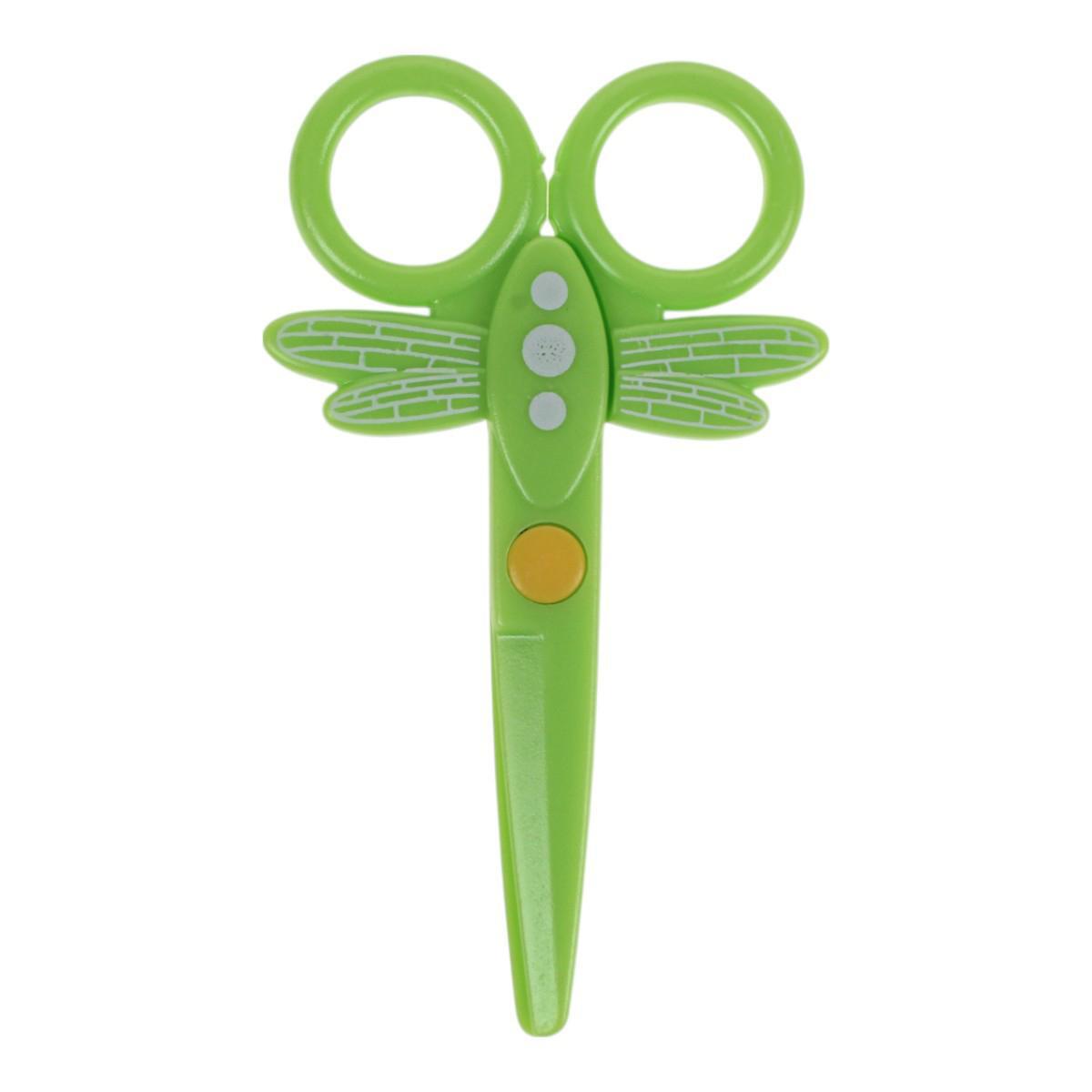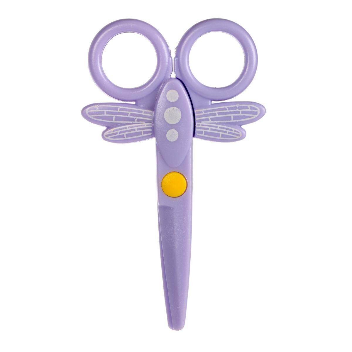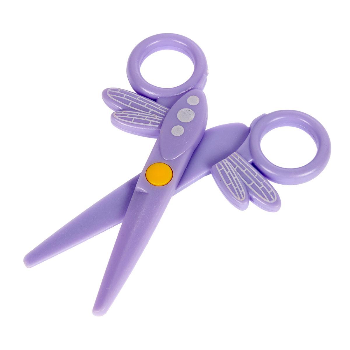 Эти ножницы выполнены из качественного ABS-пластика, что делает их легкими и удобными в использовании. Закругленные концы лезвий обеспечивают безопасность, а специальные кнопки на ручках помогают детям легко управлять инструментом. Яркий дизайн и форма в виде стрекозы привлекают внимание и делают процесс резки увлекательным.