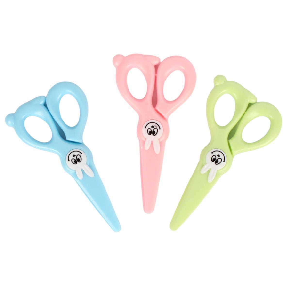 Ножницы детские пластиковые "Зайки" 12 см, безопасные, 3 цвета микс, обучение резке