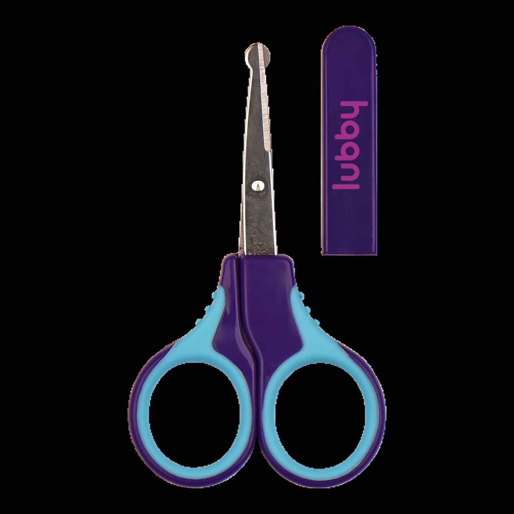 Ножницы для новорожденных безопасные, короткие лезвия с защитным чехлом, металл/пластик, синий, фиолетовый (Lubby)