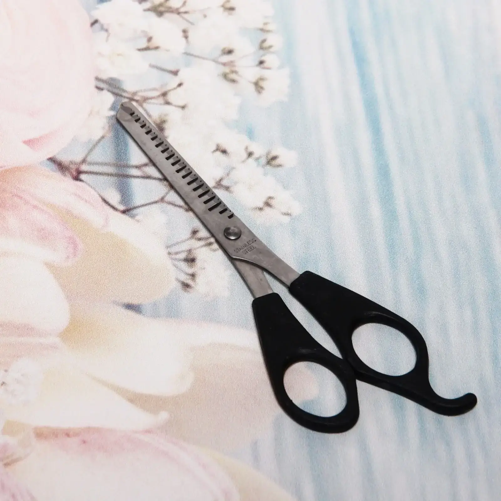 Выбирая ножницы «Barber», вы получаете надежный инструмент, который прослужит долго благодаря высококачественным материалам. Лезвия из нержавеющей стали обеспечивают долговечность и легкость в уходе, а черные пластиковые ручки с углублениями для пальцев гарантируют комфортное использование. Эти ножницы помогут вам сэкономить время на стрижке и добиться отличных результатов.