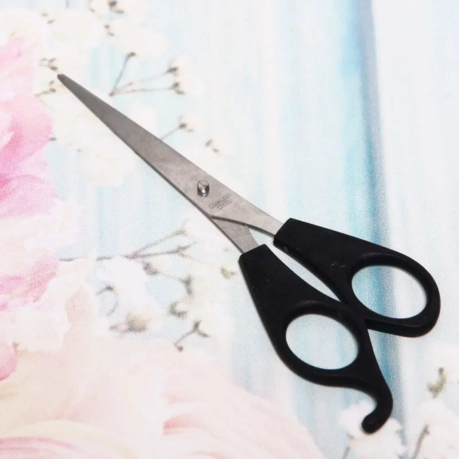 Ножницы выполнены из качественных материалов: лезвия изготовлены из прочного металла, а ручки — из легкого и прочного пластика. Это сочетание материалов обеспечивает долговечность и легкость в использовании. Ножницы имеют стандартный размер, что делает их универсальными для любого пользователя.