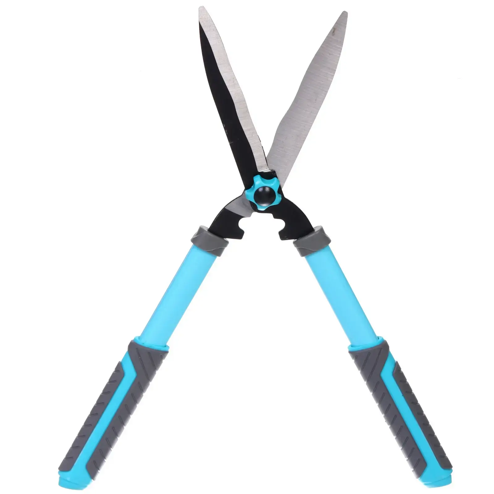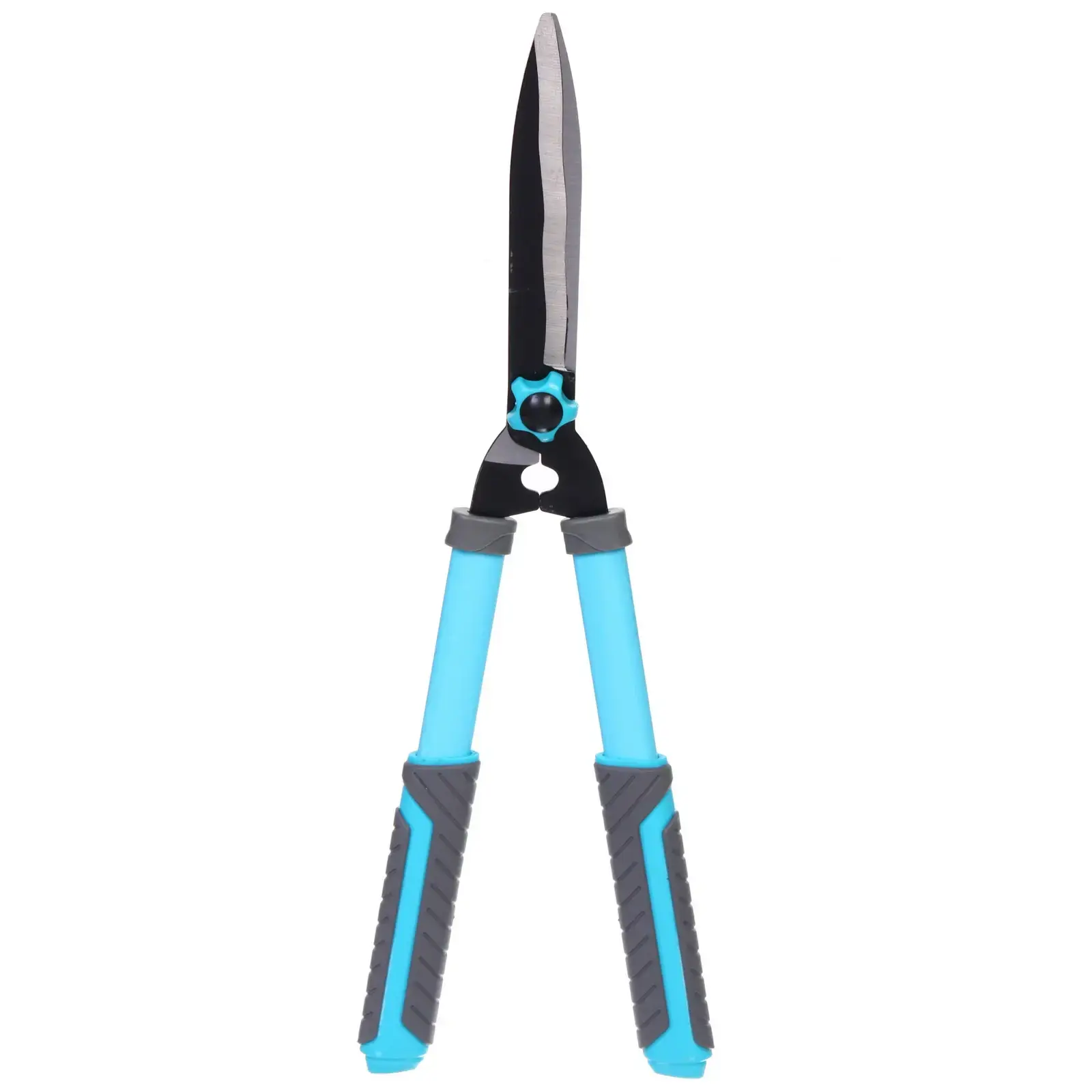 Ножницы имеют длину 60 см и выполнены из прочного металла, что гарантирует их долговечность. Ручки выполнены из пластика и имеют голубой цвет с серыми резиновыми вставками для удобства хвата. Эти ножницы станут незаменимым инструментом в вашем саду, позволяя вам поддерживать порядок и красоту на вашем участке.