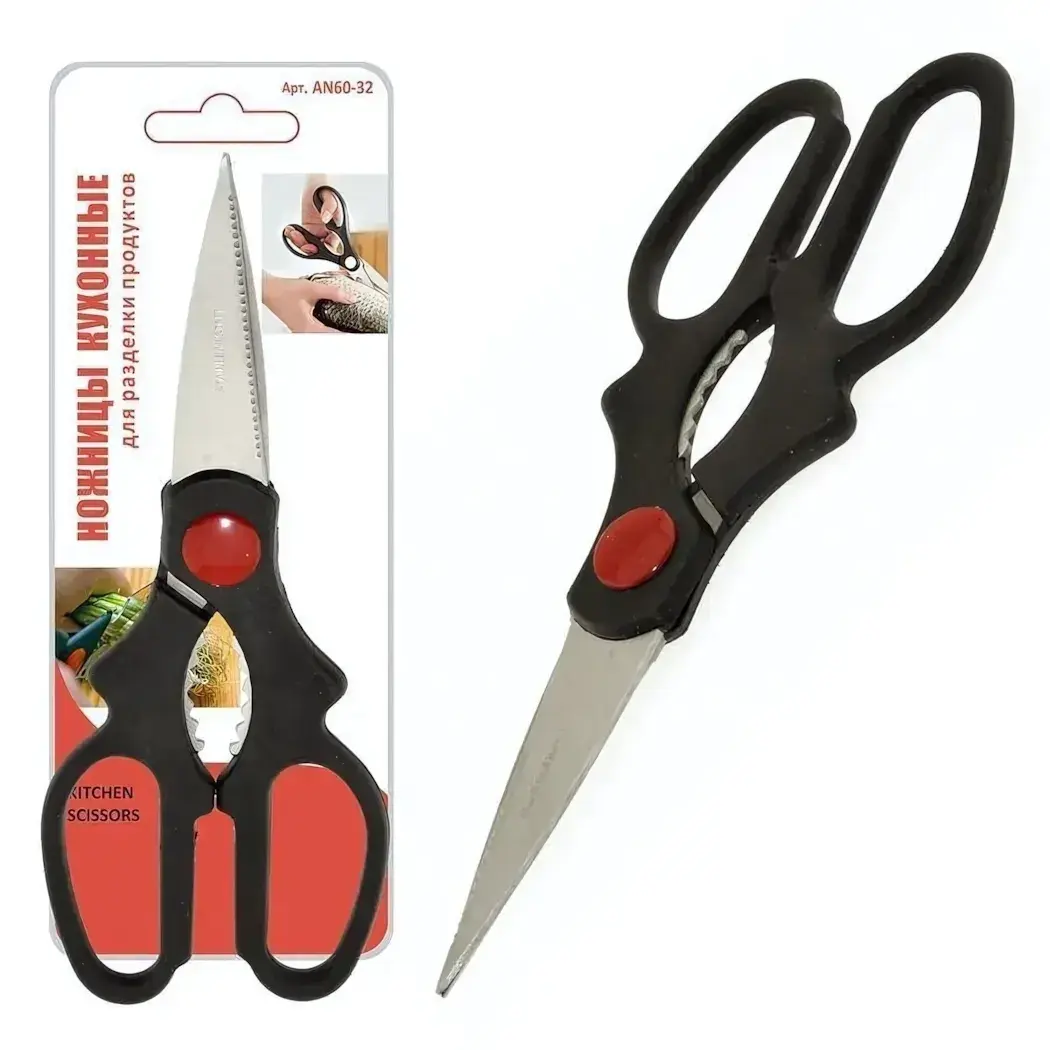 Ножницы кухонные с зубчатыми лезвиями, черные ручки, металл/пластик, для разделки продуктов
