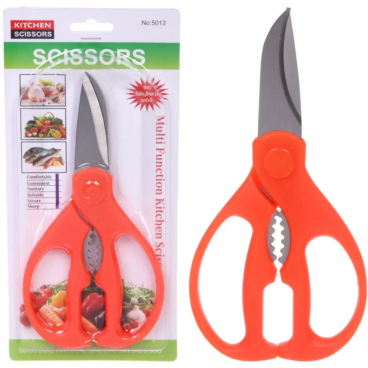 Ножницы выполнены из качественных материалов: металлические лезвия обеспечивают долговечность, а пластиковые ручки — комфорт при использовании. Ярко-оранжевый цвет делает их стильным дополнением к вашей кухонной утвари. Не упустите возможность сделать процесс готовки более удобным и приятным с этими кухонными ножницами!