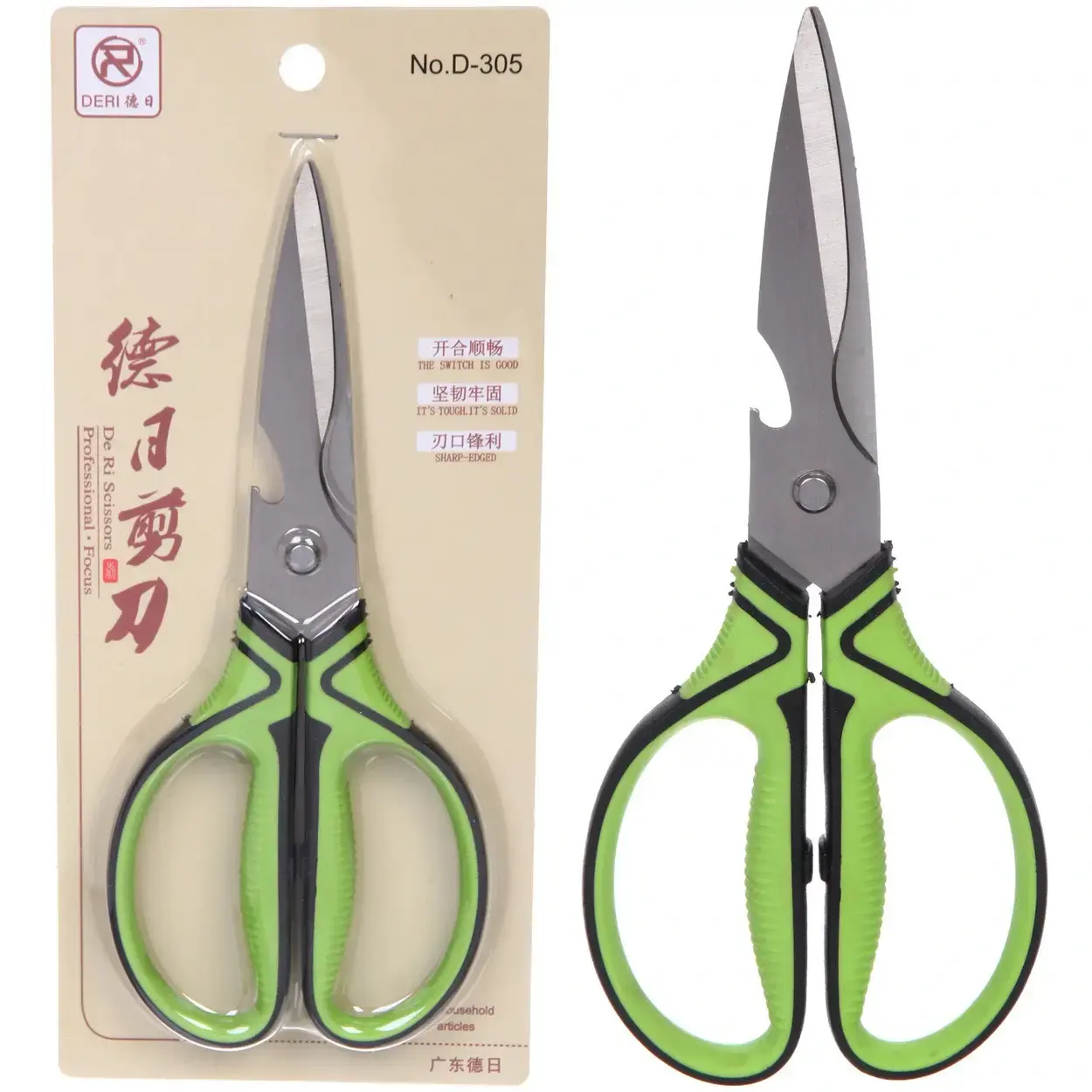 Ножницы выполнены из высококачественных материалов: лезвия из нержавеющей стали, а ручки из прочного пластика. Цвет ручек — зелёный с черными вставками, что придаёт им стильный вид. Эти ножницы идеально впишутся в любой интерьер кухни и станут отличным дополнением к вашим кухонным принадлежностям.