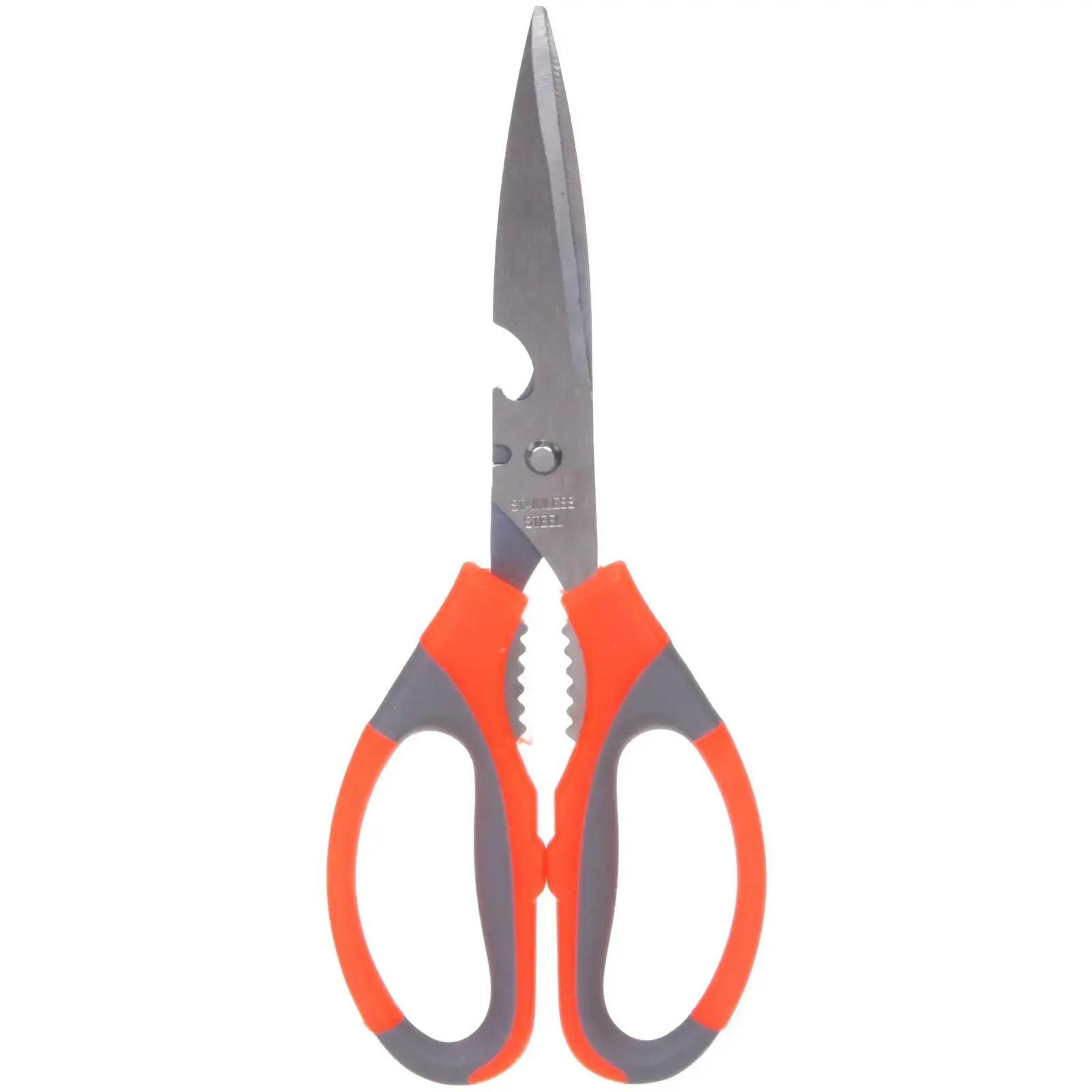 Ножницы изготовлены из прочного металла и пластика, что обеспечивает их долговечность. Оранжевые и серые ручки не только стильные, но и удобные для хвата. Эти ножницы имеют дополнительные функции, такие как орехокол и открывашка, что делает их идеальным выбором для любой кухни.