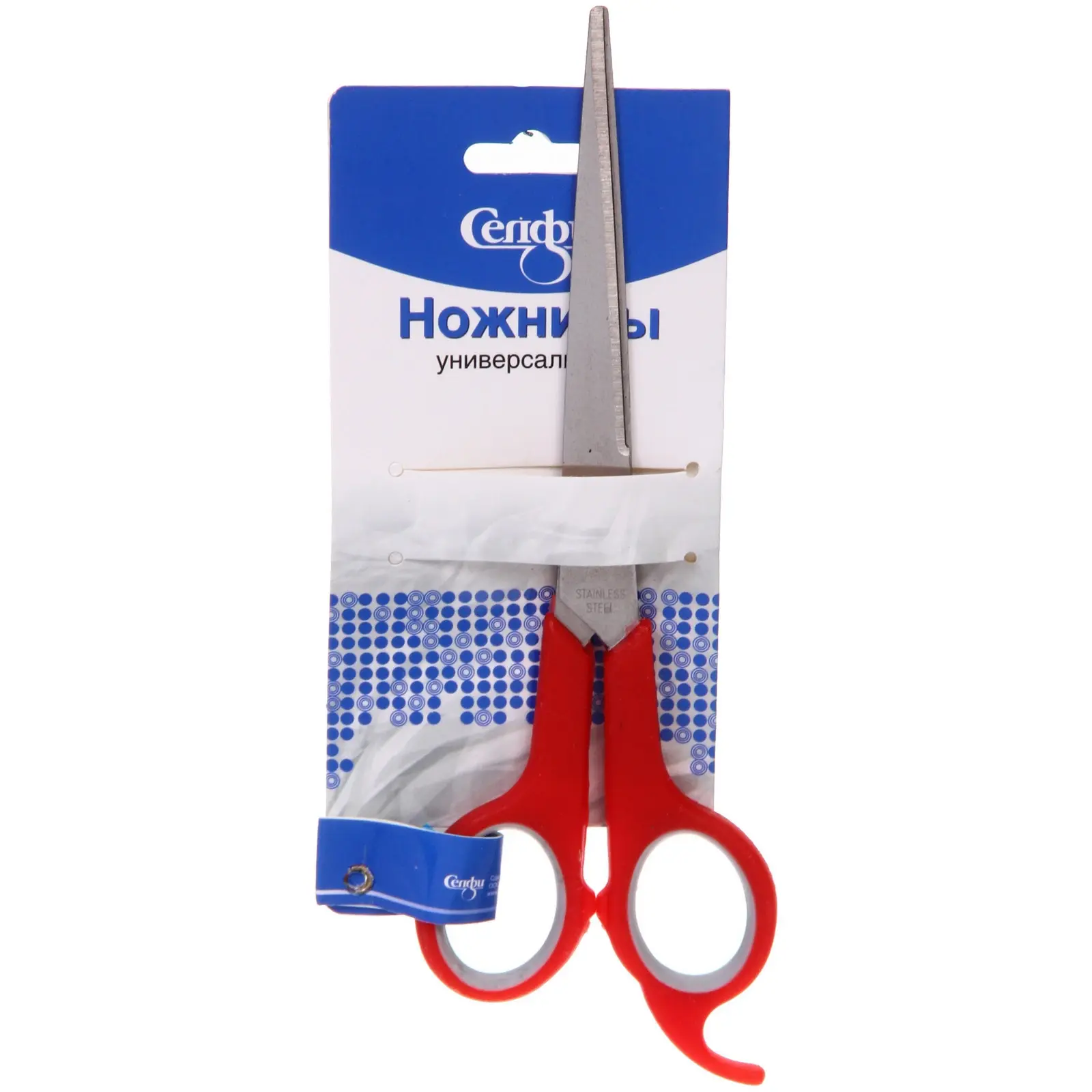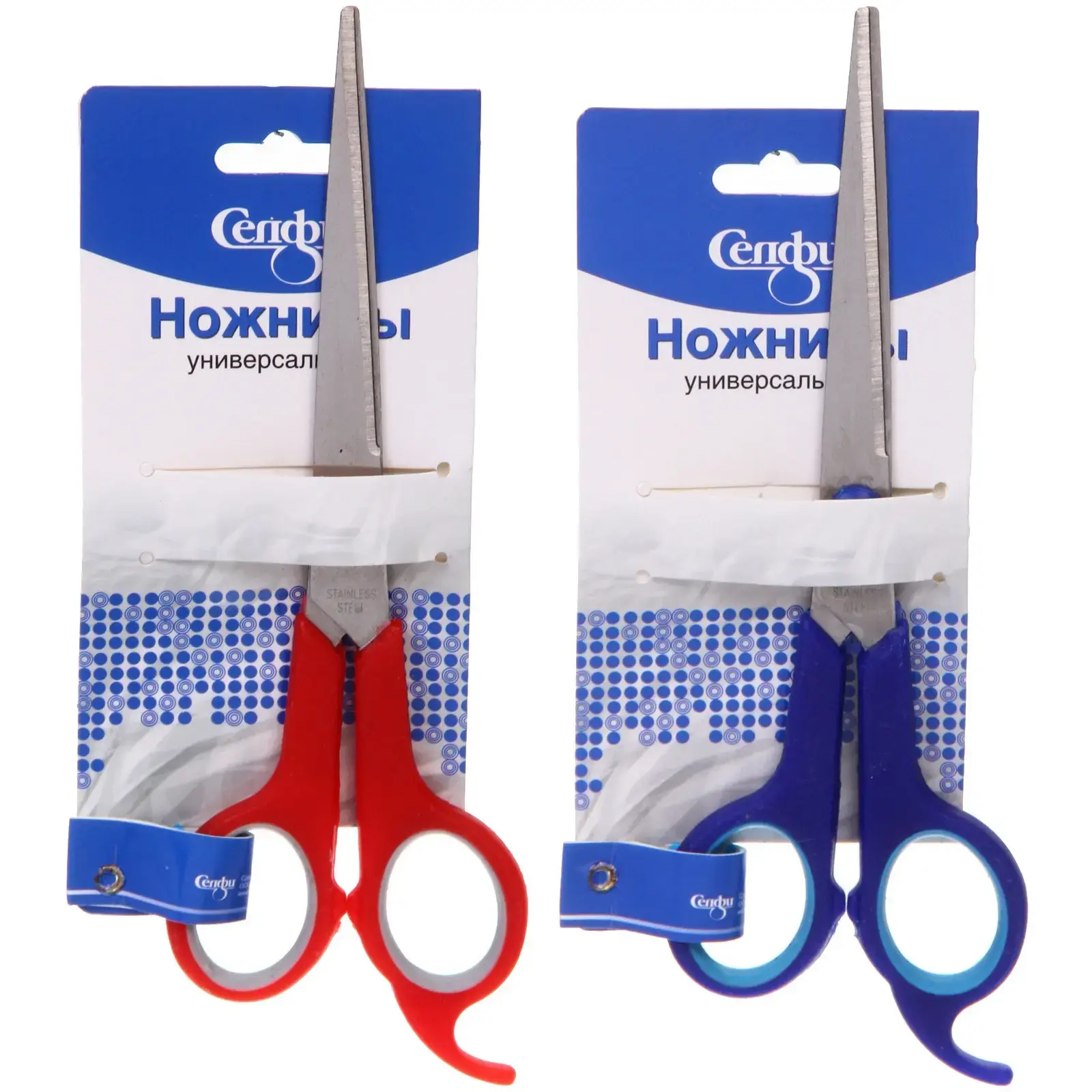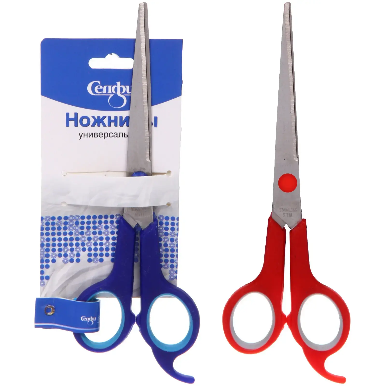 Ножницы универсальные 'Селфи', с упором для пальца, 18.1см, цвет микс красный/голубой