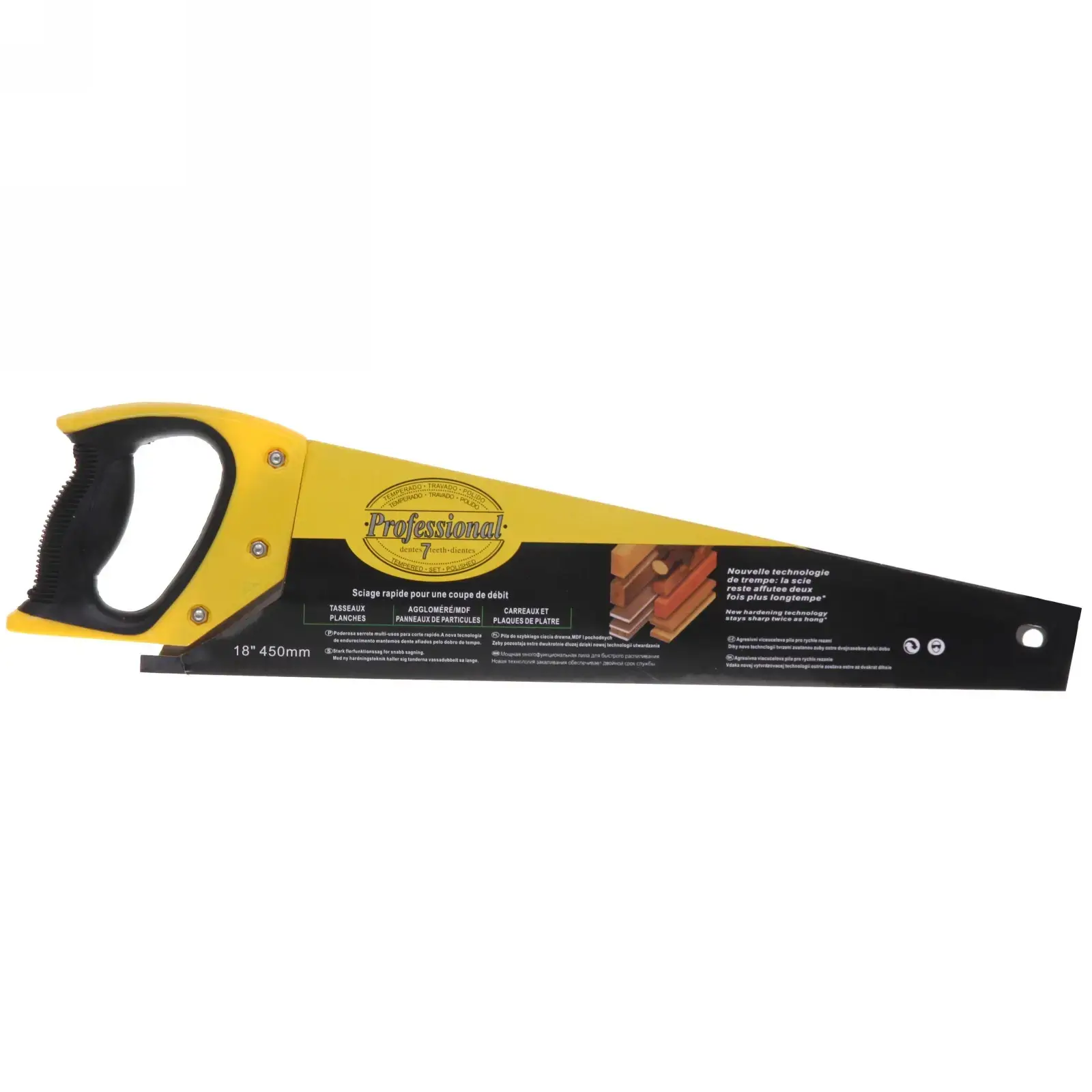 Ножовка по дереву 450мм, желтая ручка, зубья для быстрого распила