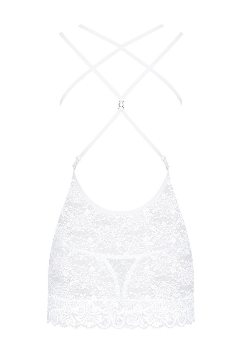 Выбирая эту сорочку, вы получаете не только красивое белье, но и уверенность в себе. Она подходит для женщин, которые ценят качество и стиль. Сочетание кружевного дизайна и удобного кроя делает её идеальным выбором для тех, кто хочет выглядеть привлекательно и чувствовать себя комфортно. В комплекте идут трусики-стринги, что делает этот набор завершенным и гармоничным.