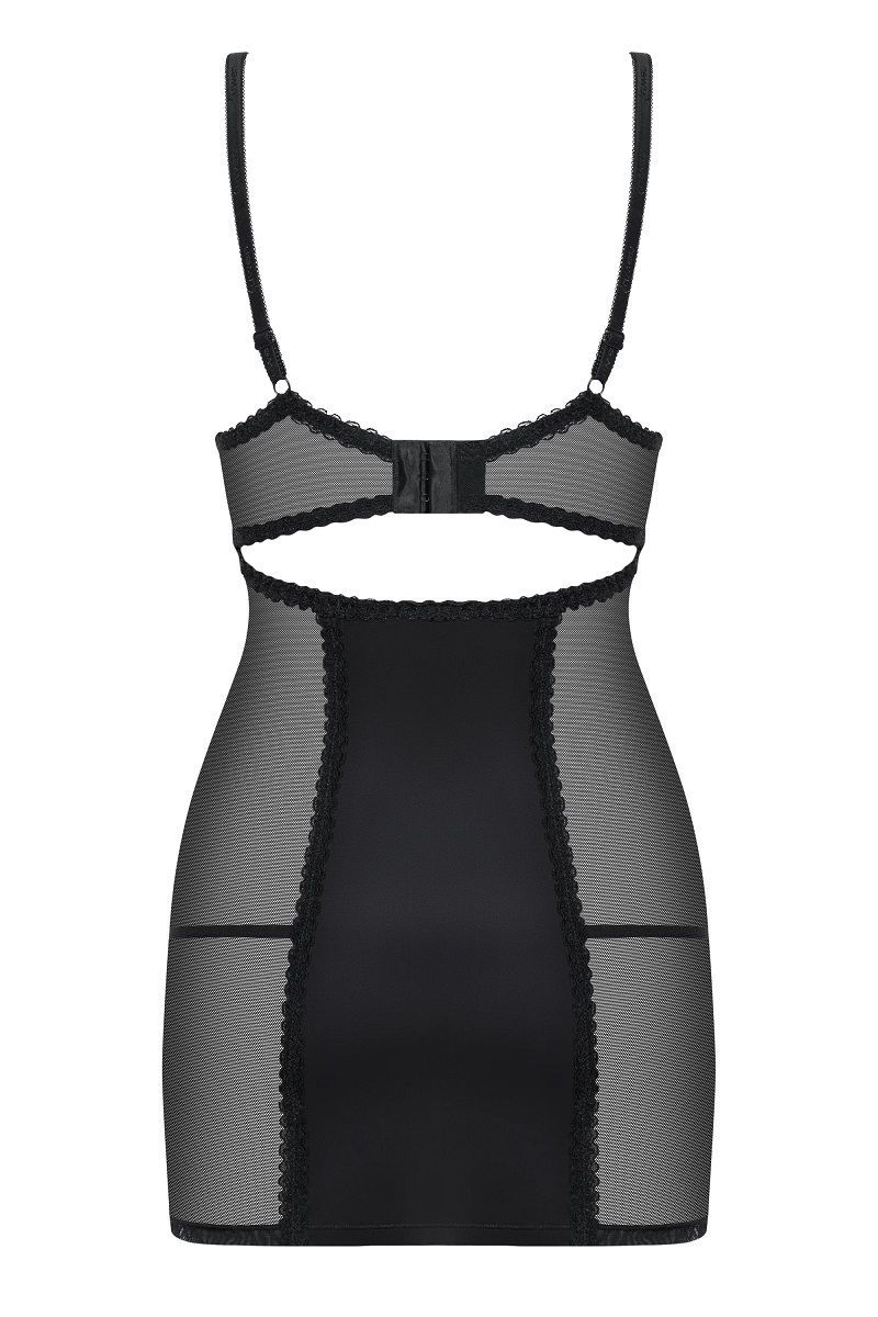 Облегающая сорочка с полупрозрачными вставками и трусиками-стрингами в комплекте — это идеальный выбор для создания романтического образа. Эластичная ткань и продуманный крой обеспечивают идеальную посадку по фигуре, подчеркивая достоинства и даря уверенность в себе. Модель Amallie сочетает в себе откровенную эстетику и комфорт для повседневного использования.