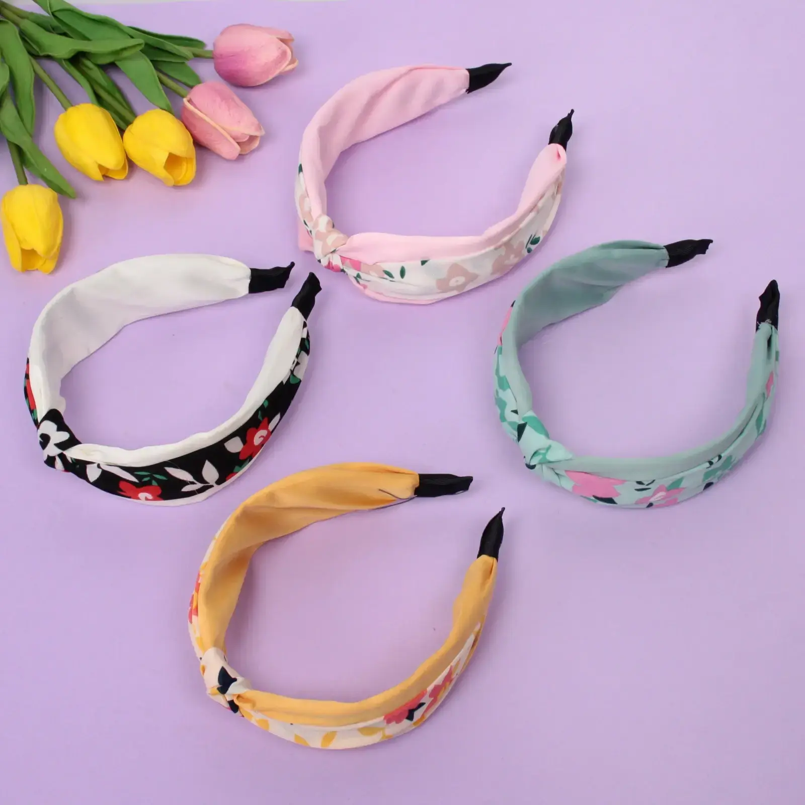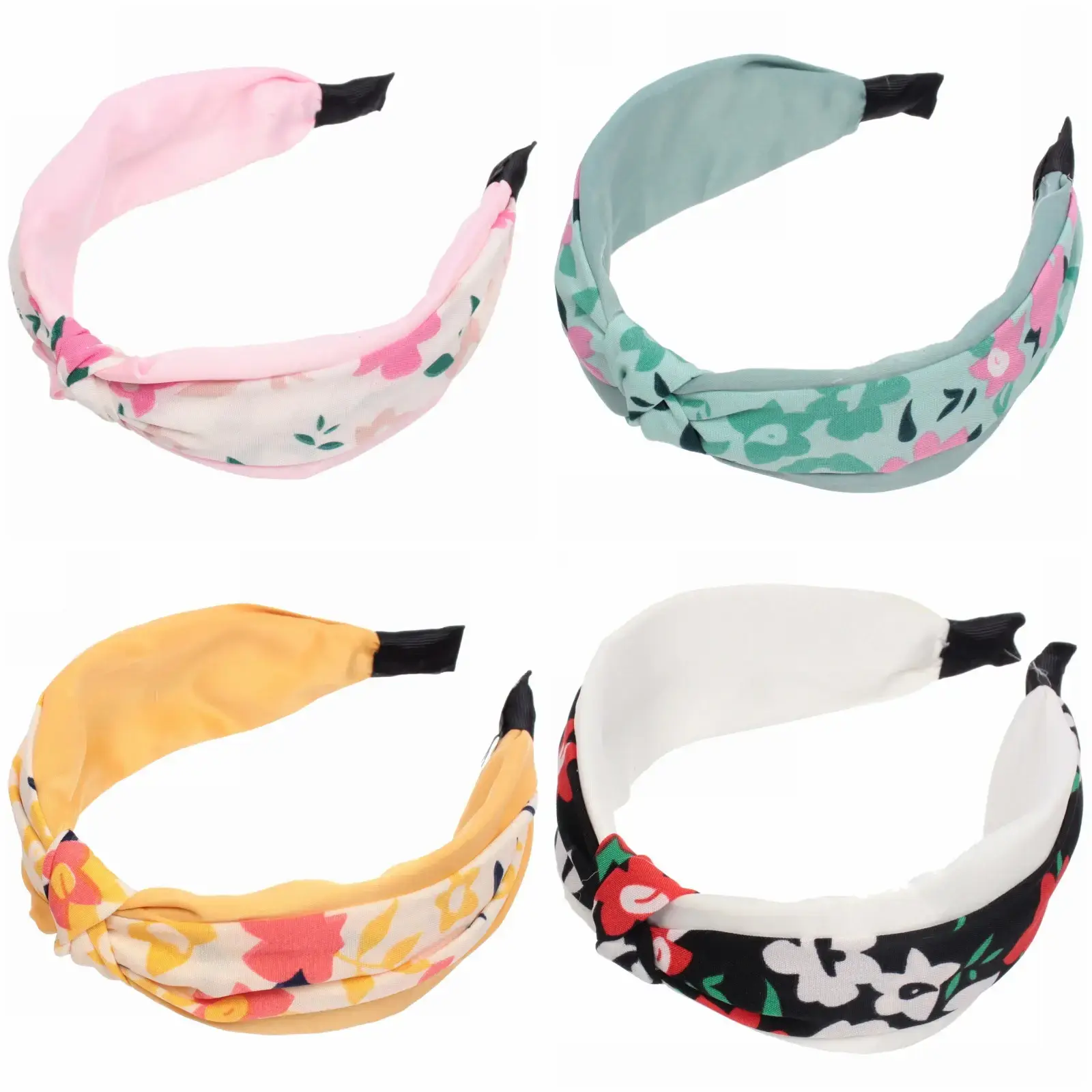Ободок выполнен из качественного пластика и текстиля, что гарантирует долговечность и лёгкость в уходе. В комплект входят 6 различных цветов, включая розовый, зелёный, жёлтый и чёрный с цветочным узором, что позволяет вам менять стиль в зависимости от настроения и образа. Размер ободка составляет 5 см в ширину, что делает его универсальным для всех.