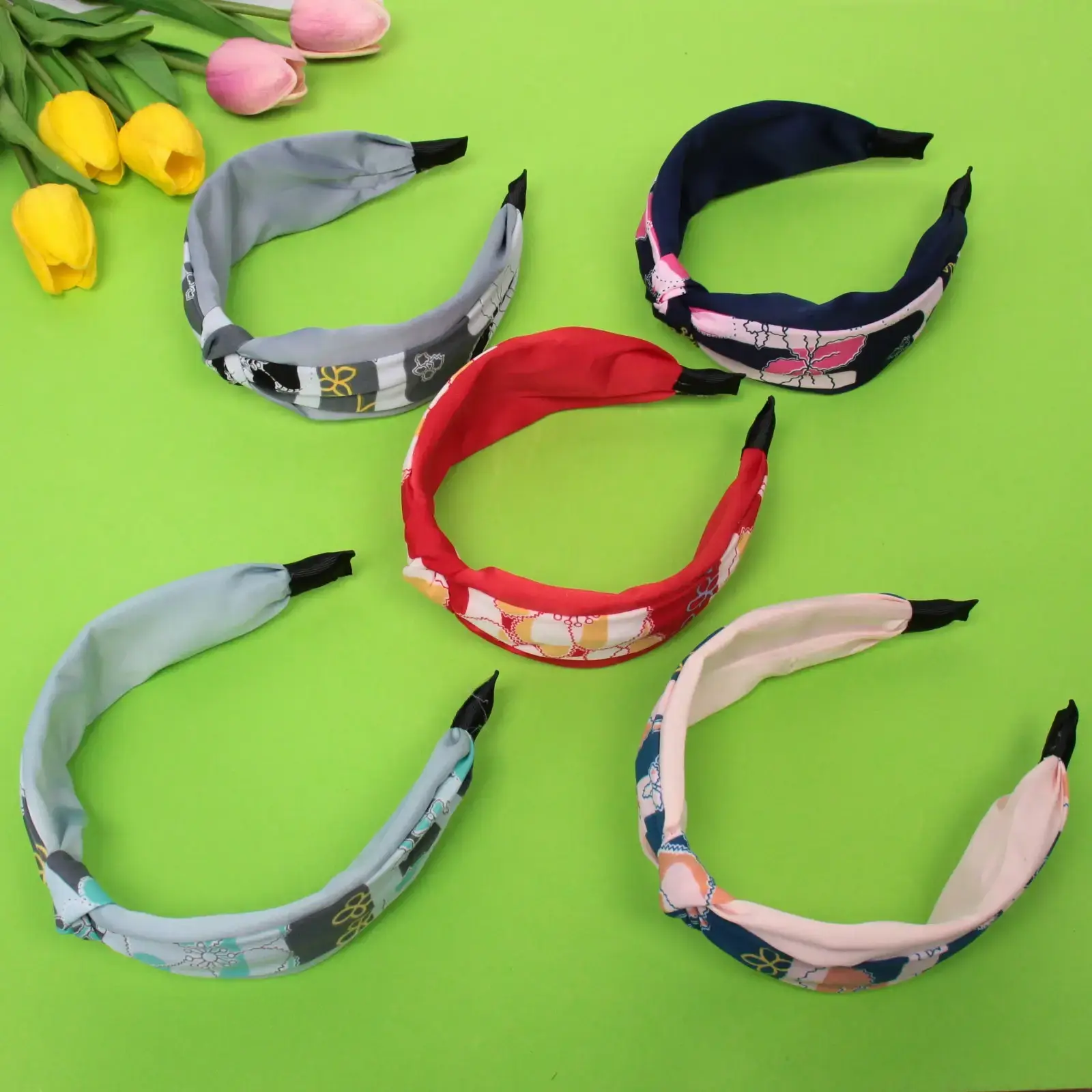 Ободок выполнен из качественного пластика и текстиля, что гарантирует его долговечность и практичность. Микс из пяти ярких цветов — светло-серый, светло-голубой, розовый, красный и темно-синий — позволит вам легко сочетать его с любым нарядом. Каждый ободок украшен уникальным узором, что делает его не только функциональным, но и стильным аксессуаром.