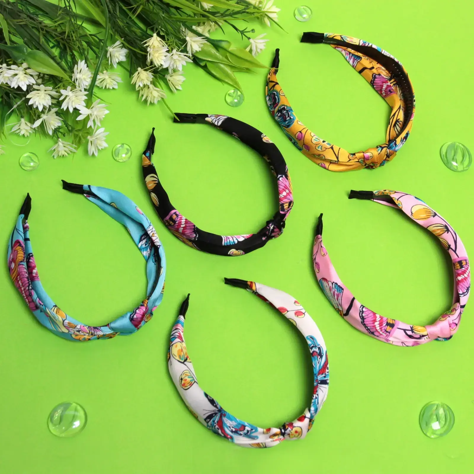 Ширина ободка составляет 2,8 см, что делает его универсальным для большинства типов волос. Микс из 6 цветов включает в себя голубой, черный, желтый, розовый, белый и другие, что позволяет вам экспериментировать с вашим стилем. Ободок легко комбинируется с различными нарядами, добавляя яркие акценты в ваш образ.