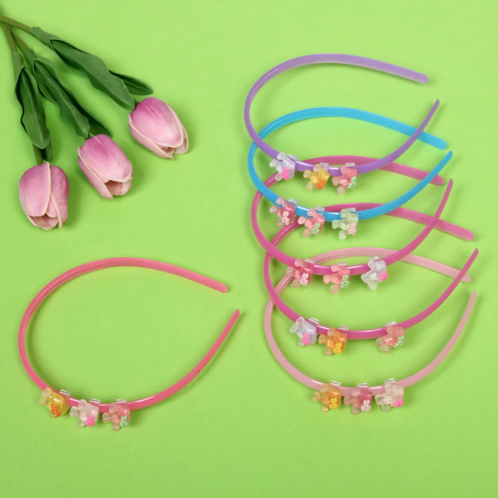Ободок поставляется в одном из 6 доступных цветов (розовый, голубой, фиолетовый и другие), каждый из которых станет идеальным дополнением к детскому гардеробу. Материал: высококачественный пластик, безопасный для детей.