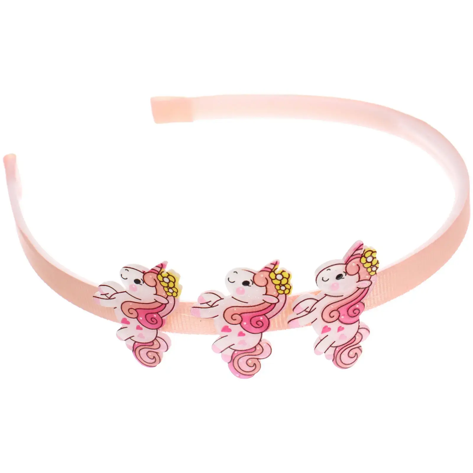 Ободок представлен в шести различных цветах, включая розовый, красный, желтый и фиолетовый. Его ширина составляет 1 см, что делает его универсальным для большинства детских голов. Декоративные элементы в виде единорогов добавляют игривости и делают ободок уникальным. Этот аксессуар станет отличным дополнением к любому наряду вашего ребенка.