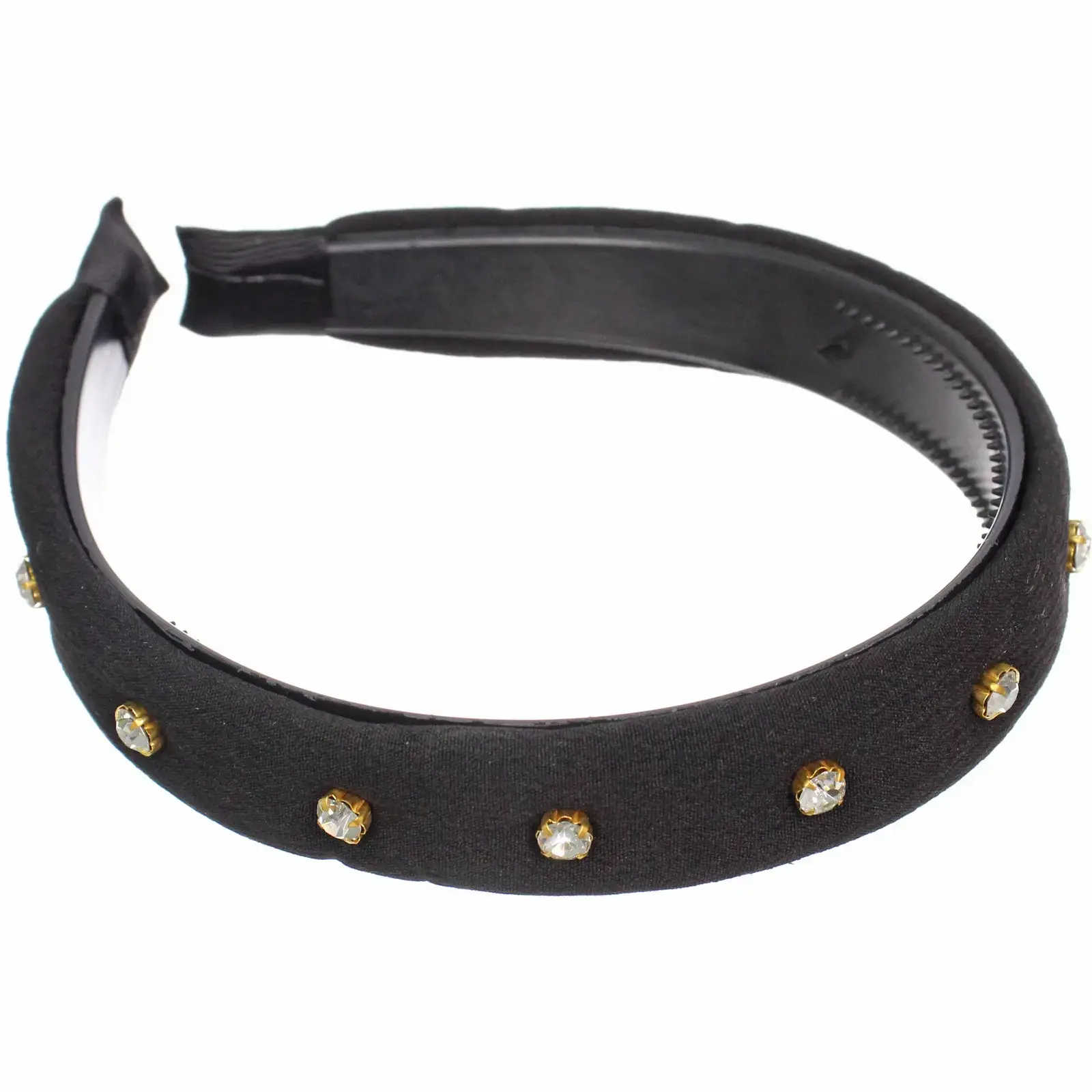 Ободок выполнен из качественных материалов: пластика и текстиля, что обеспечивает его долговечность и комфорт при ношении. Декоративные элементы в виде страз добавляют изюминку и делают ободок более привлекательным. Вы можете быть уверены, что он станет неотъемлемой частью вашего гардероба.