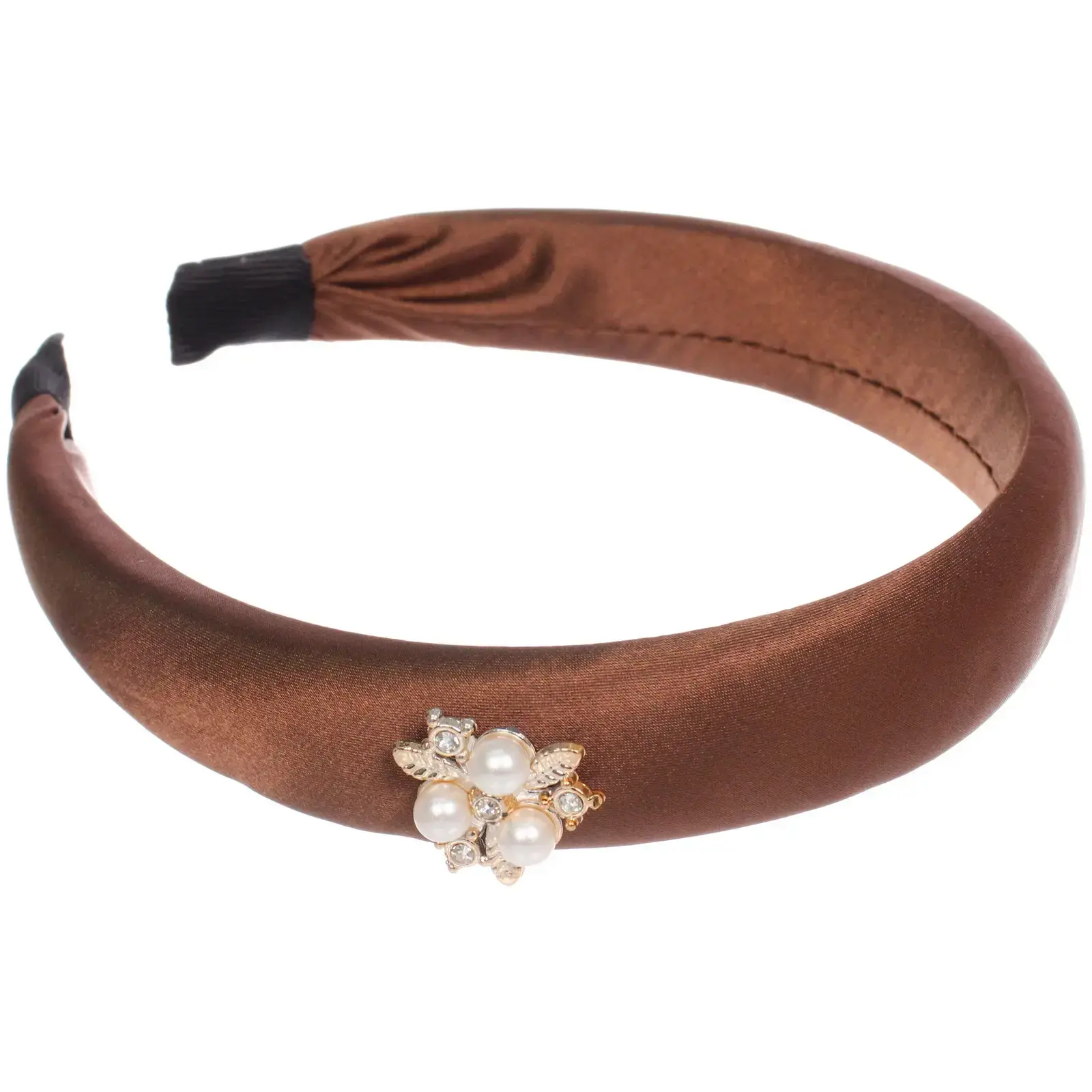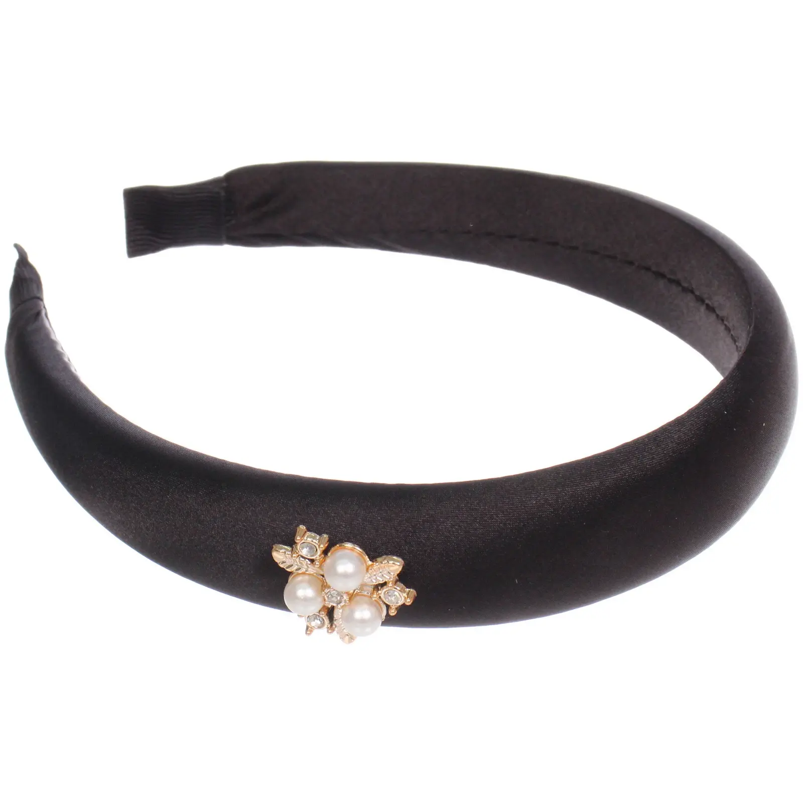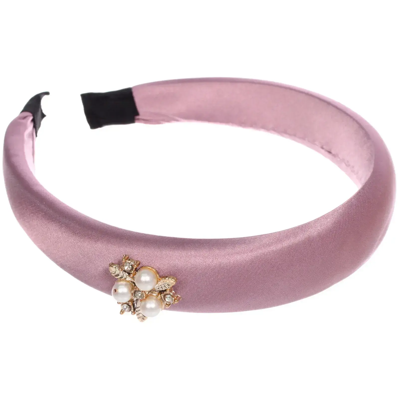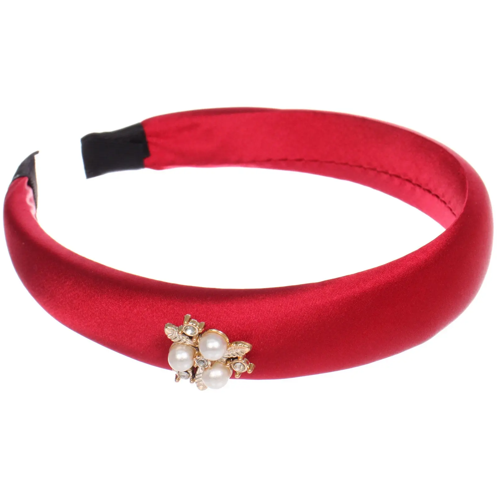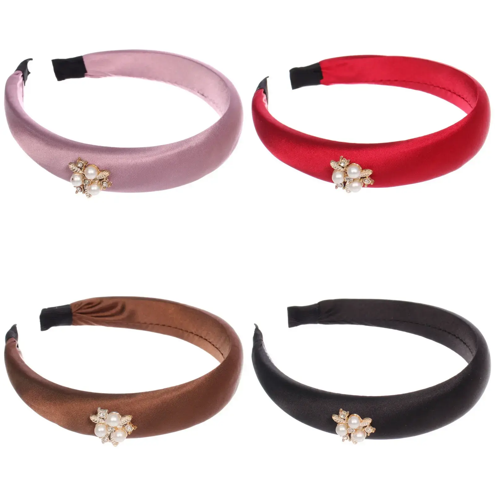 Ободок имеет ширину 2,8 см и представлен в миксе из шести ярких цветов: светло-розовый, красный, коричневый и черный. Каждый ободок украшен декоративными элементами, состоящими из жемчужин и золотистых деталей, что придаёт ему изысканный вид. Он легко надевается и надежно фиксируется на голове, обеспечивая комфорт в течение всего дня.