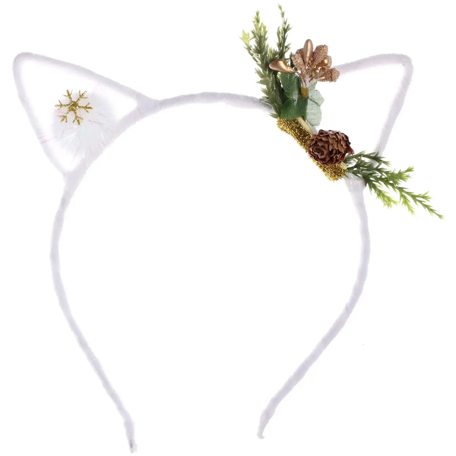 Яркий акцент новогоднего образа — белый ободок с ушками