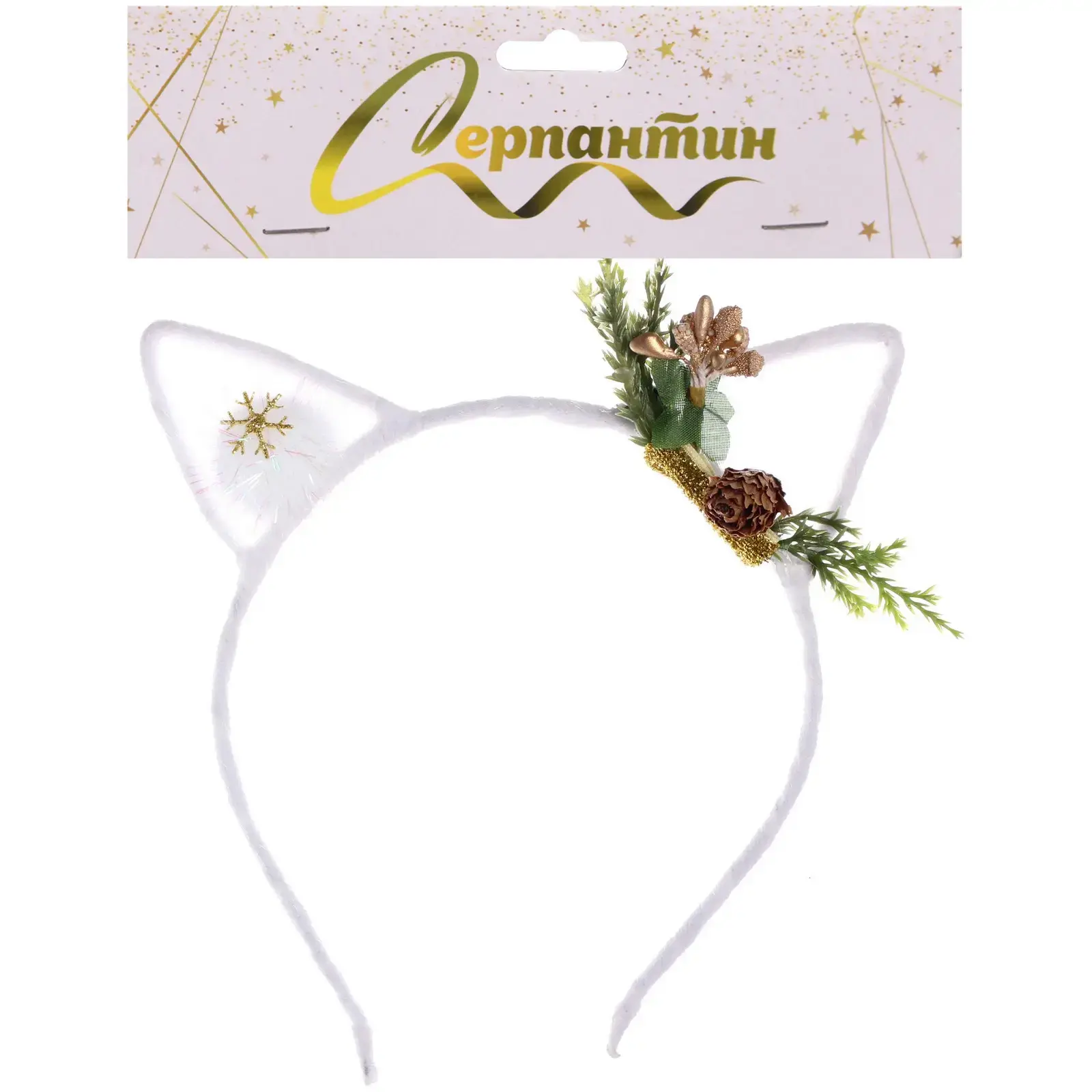 Откройте праздничное настроение с белым ободком с ушками «Серпантин». Этот аксессуар сочетает очарование сказки и удобство — мягкая конструкция не давит и подходит как детям, так и подросткам. Ушки создают игривый образ, а композиция из искусственных веточек, миниатюрной шишки, золотистого декора и снежинки прекрасно сочетается с любым зимним стилем. Такой ободок подчеркивает индивидуальность и добавляет уверенности на утренниках, тематических вечеринках и семейных фотосессиях.