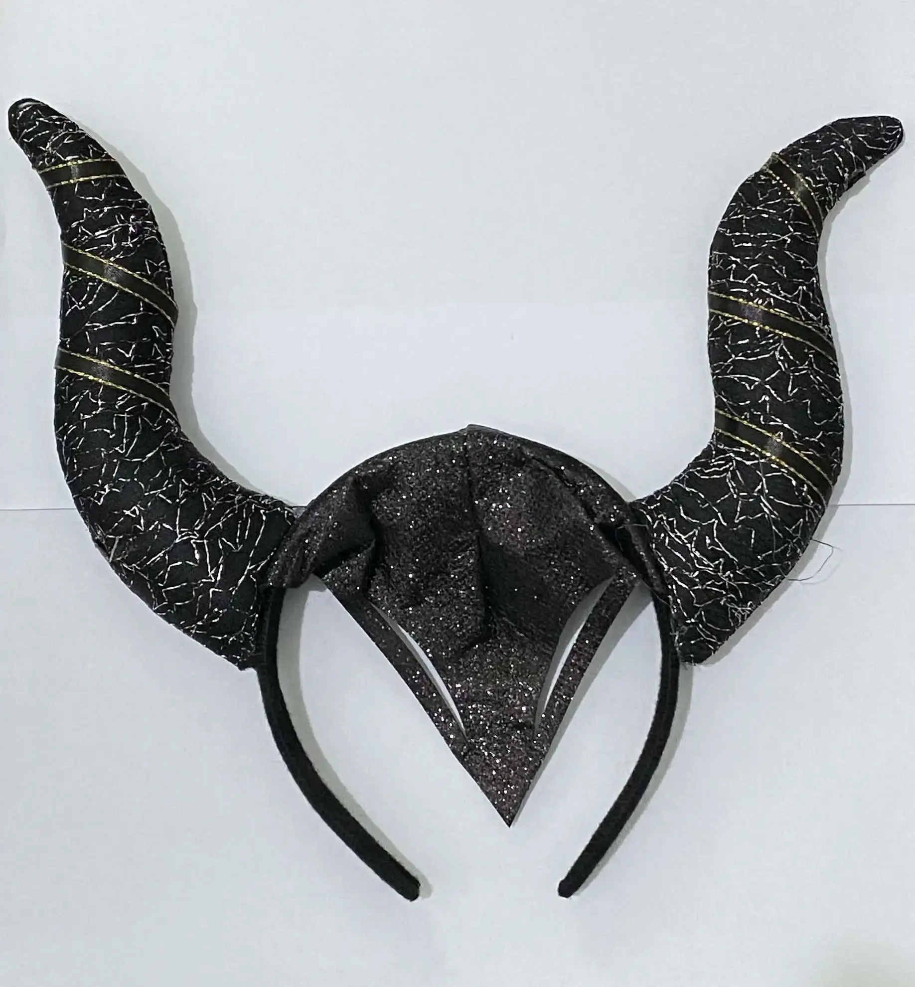Ободок выполнен из текстиля, что обеспечивает комфорт при ношении. Высота рогов составляет приблизительно 20 см, что делает их заметными и эффектными. Ободок украшен золотыми полосками, которые добавляют дополнительный блеск и стиль. Не упустите возможность стать звездой вечеринки с этим уникальным аксессуаром!
