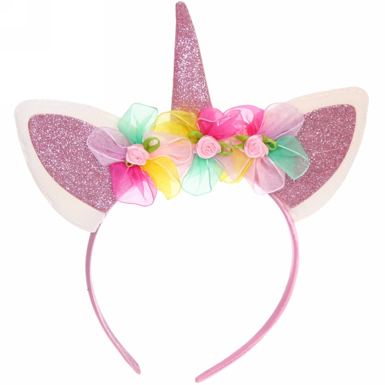 - Яркий дизайн: блестящий рог единорога, разноцветные цветы и атласные ленты