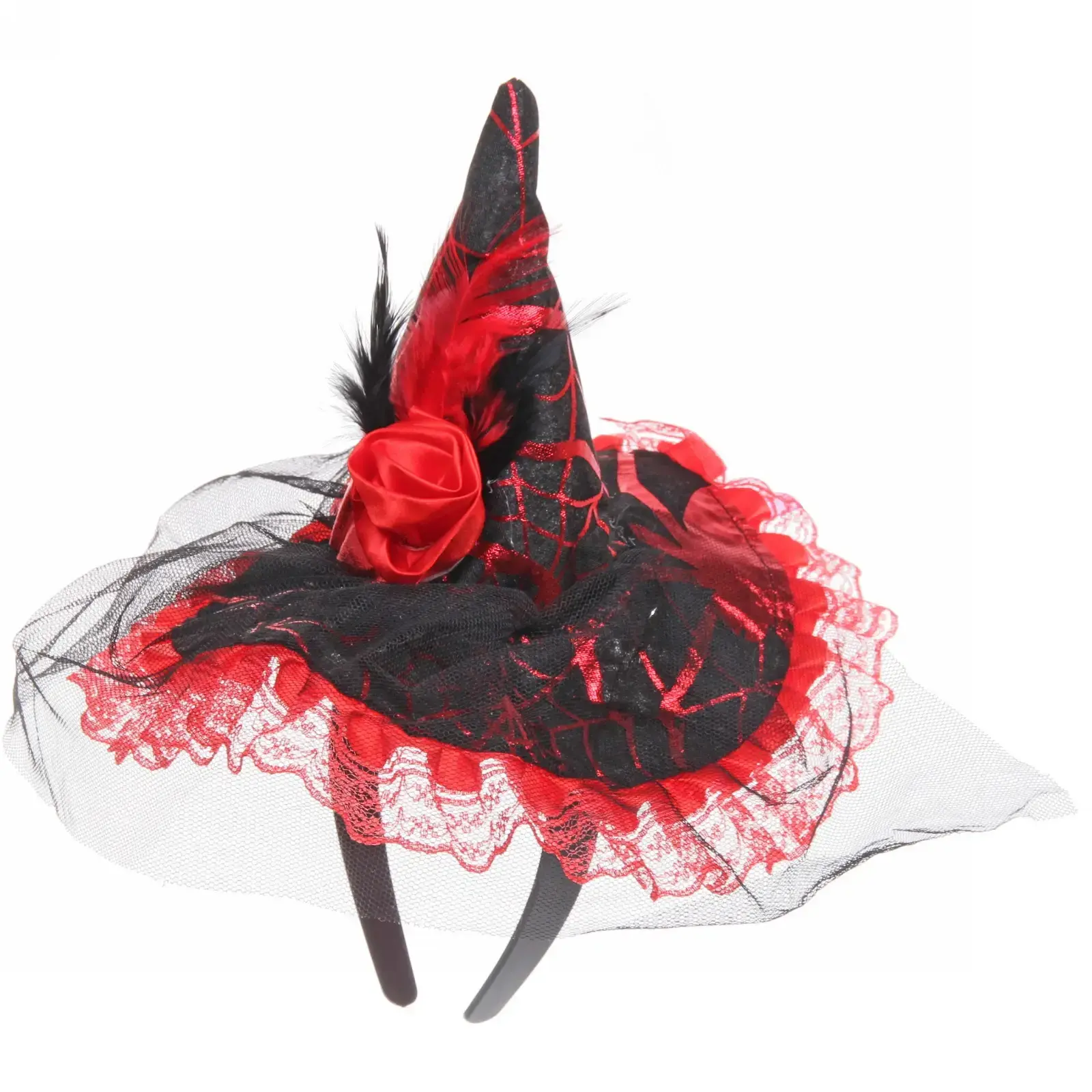 Ободок имеет конусовидную форму и украшен черной сеточкой, рюшами и черными перьями, что придает ему объем и текстуру. Размеры ободка универсальны, что позволяет использовать его как взрослым, так и детям. Не упустите возможность добавить этот стильный аксессуар в свою коллекцию карнавальных принадлежностей!