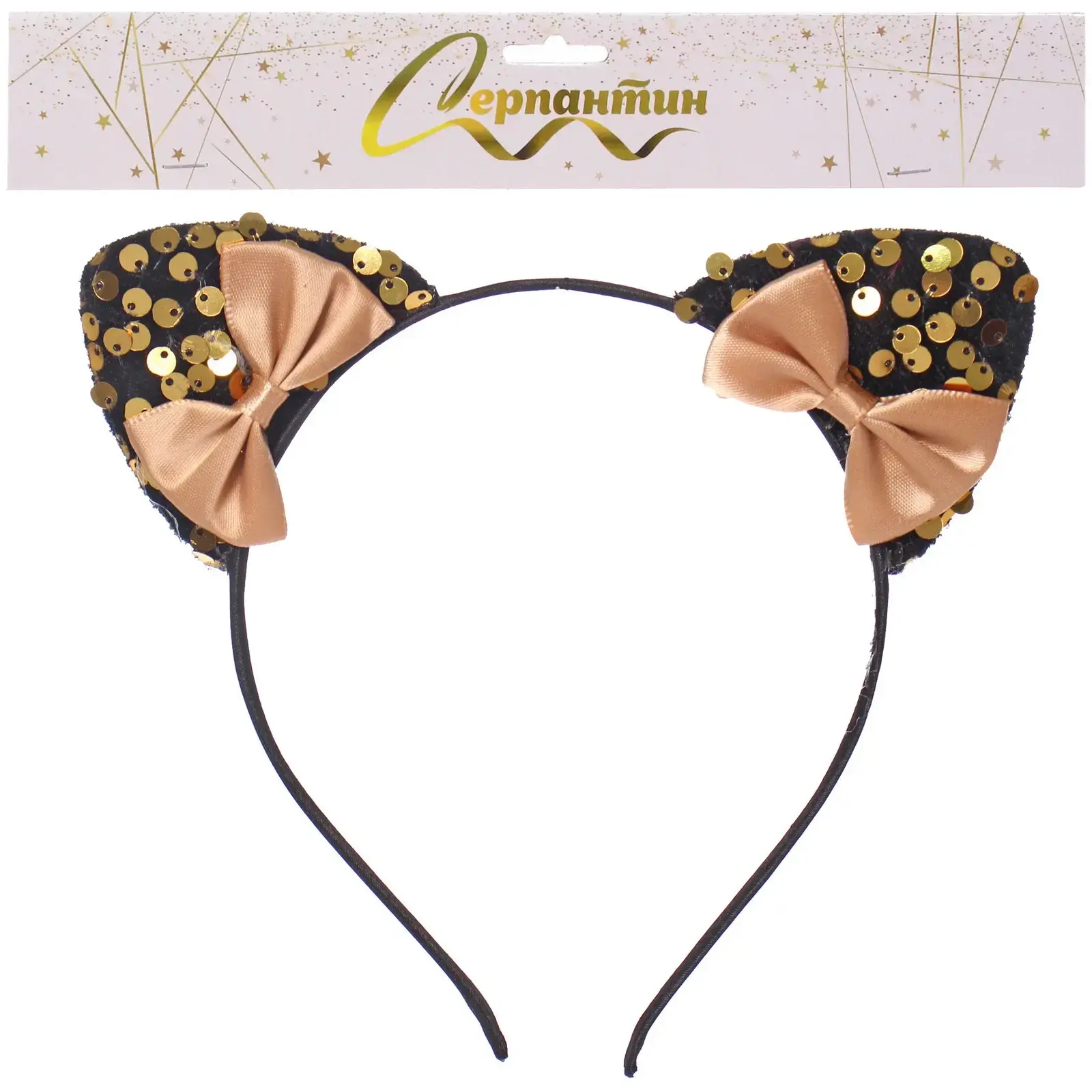 Ободок выполнен из качественных материалов: пластика и текстиля, что гарантирует его долговечность. Ушки ободка имеют форму кошачьих ушей и украшены блестками, что создает эффектный вид. Размеры ободка стандартные, что делает его подходящим для большинства пользователей. Не упустите возможность добавить этот яркий аксессуар в свою коллекцию!