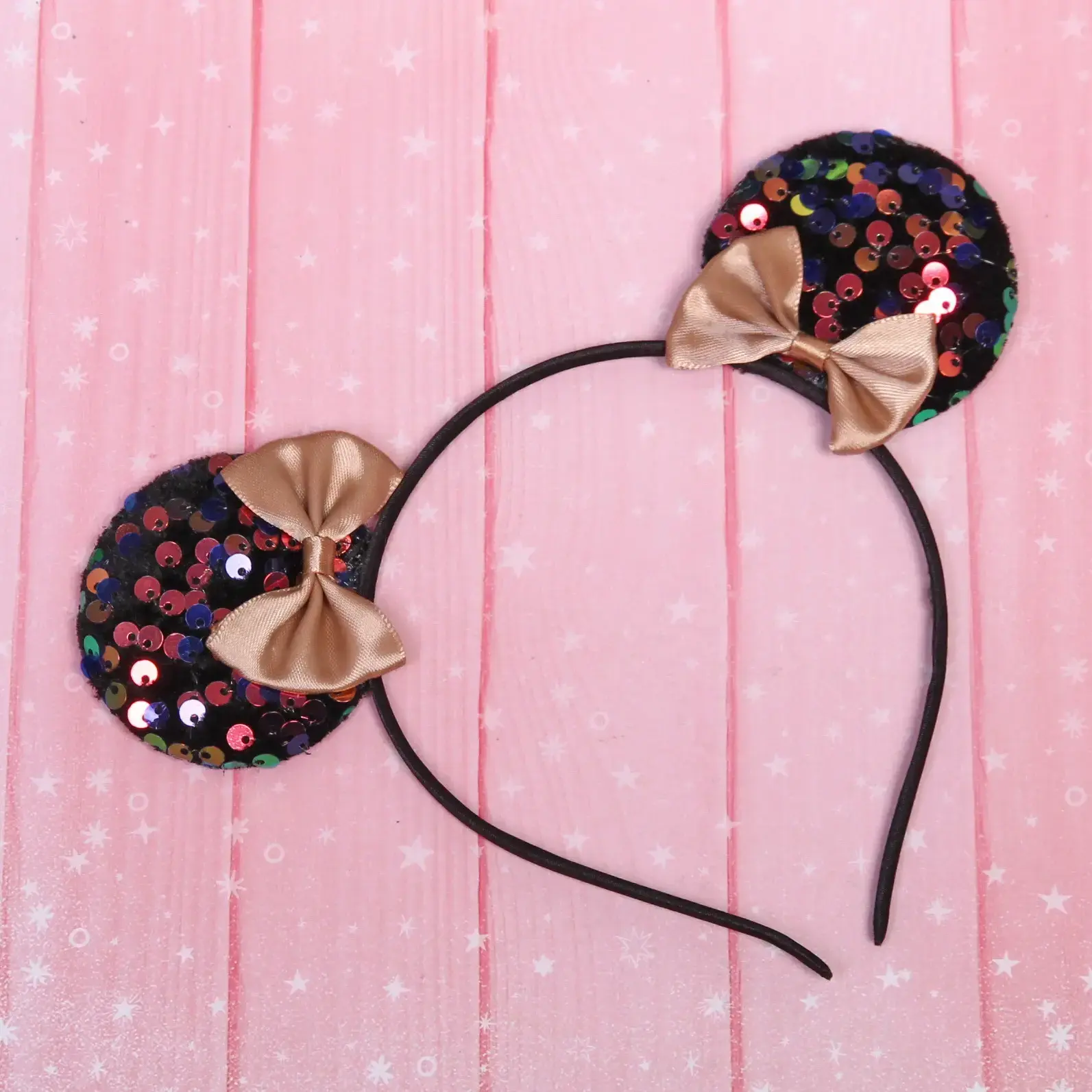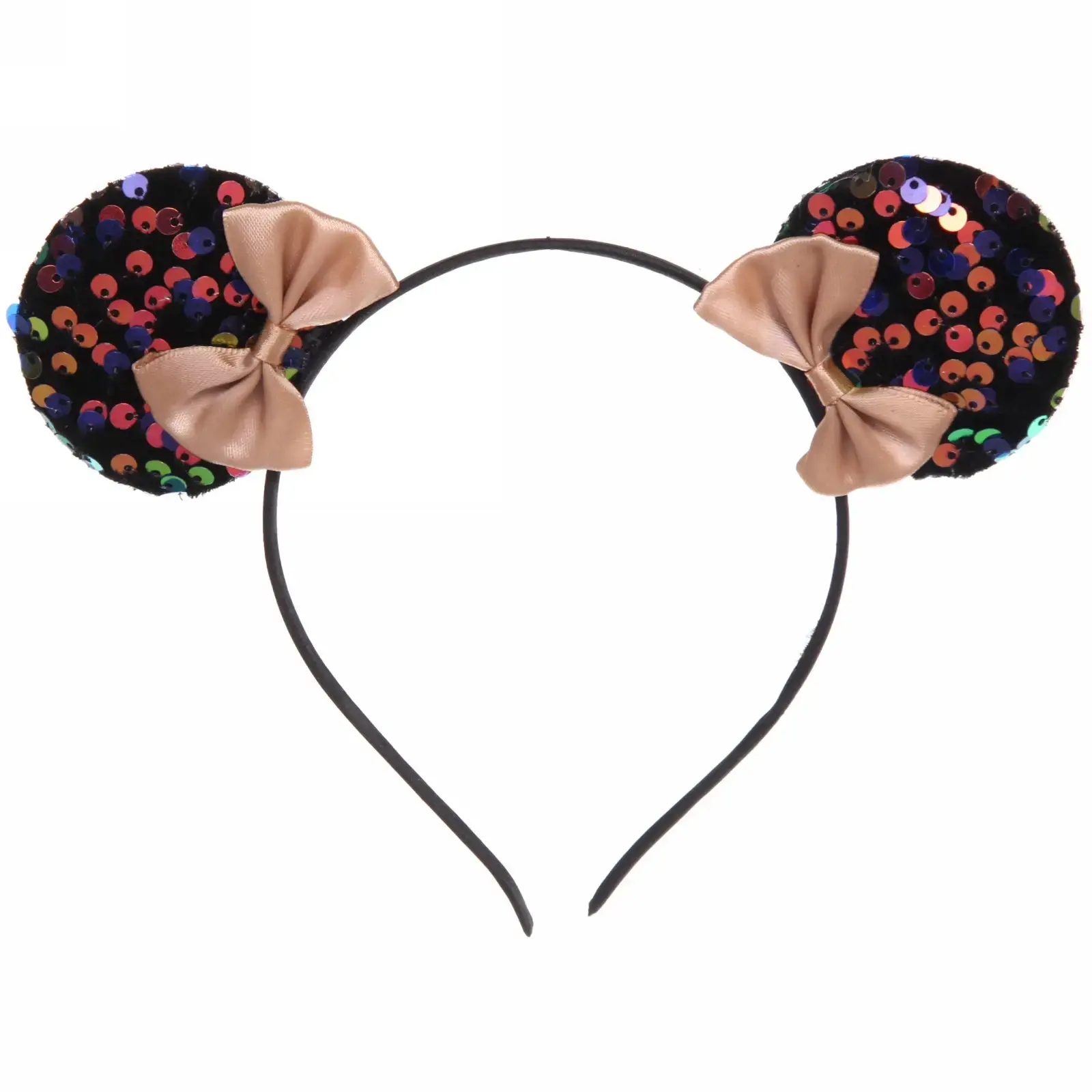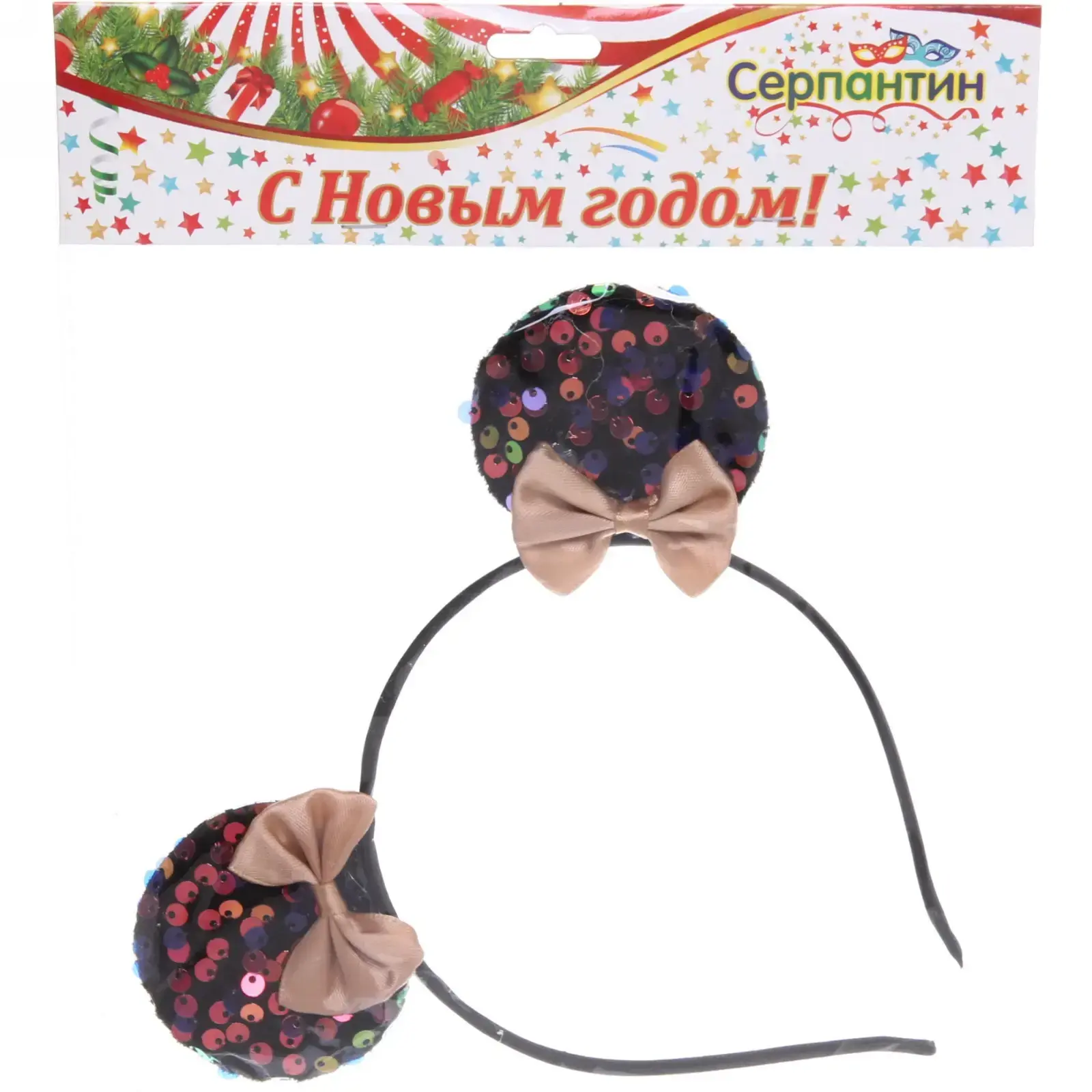 Карнавальный ободок с переливающимися пайетками и нежными бантами станет завершающим штрихом новогоднего костюма. Гибкая конструкция обеспечивает комфортную посадку, а эффектные детали привлекают внимание в любом освещении.