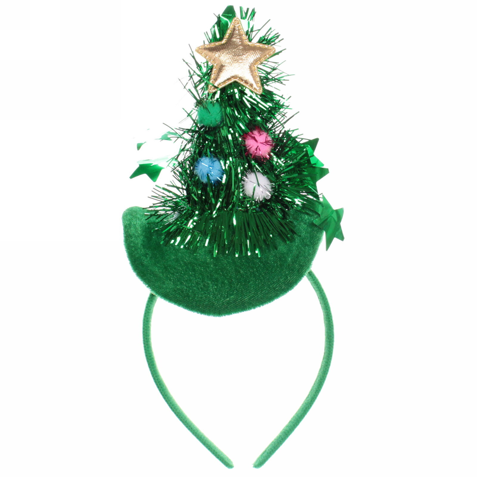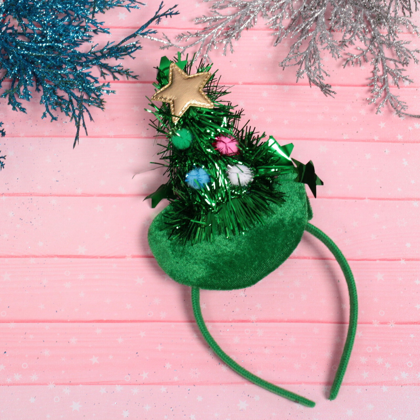 Ободок карнавальный 'Нарядная ёлка', зеленый с золотой звездой, текстиль/пластик