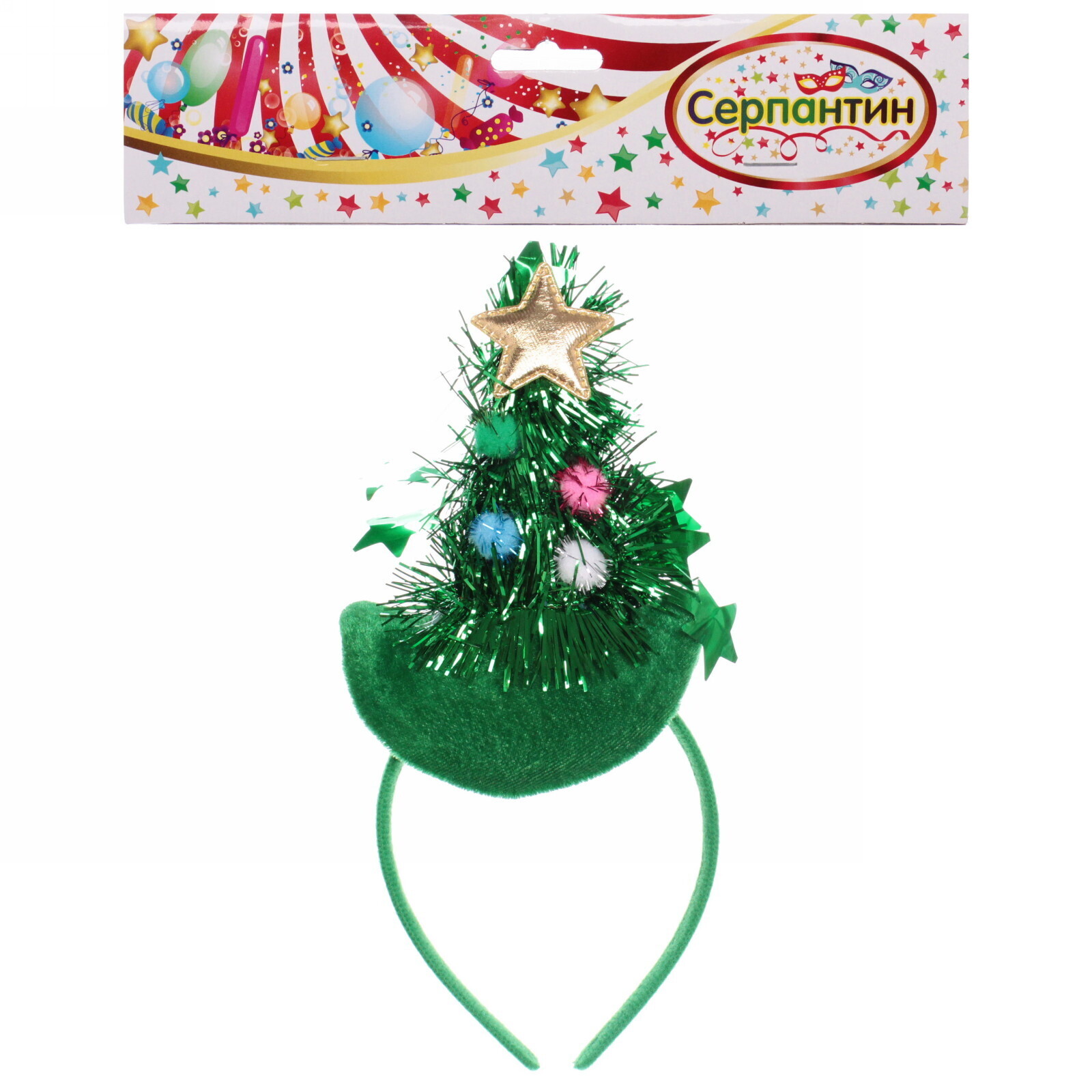 Ободок карнавальный 'Нарядная ёлка' мгновенно превратит вас в центр новогоднего веселья. Яркие декоративные элементы и мерцающие детали создают неповторимую атмосферу торжества.