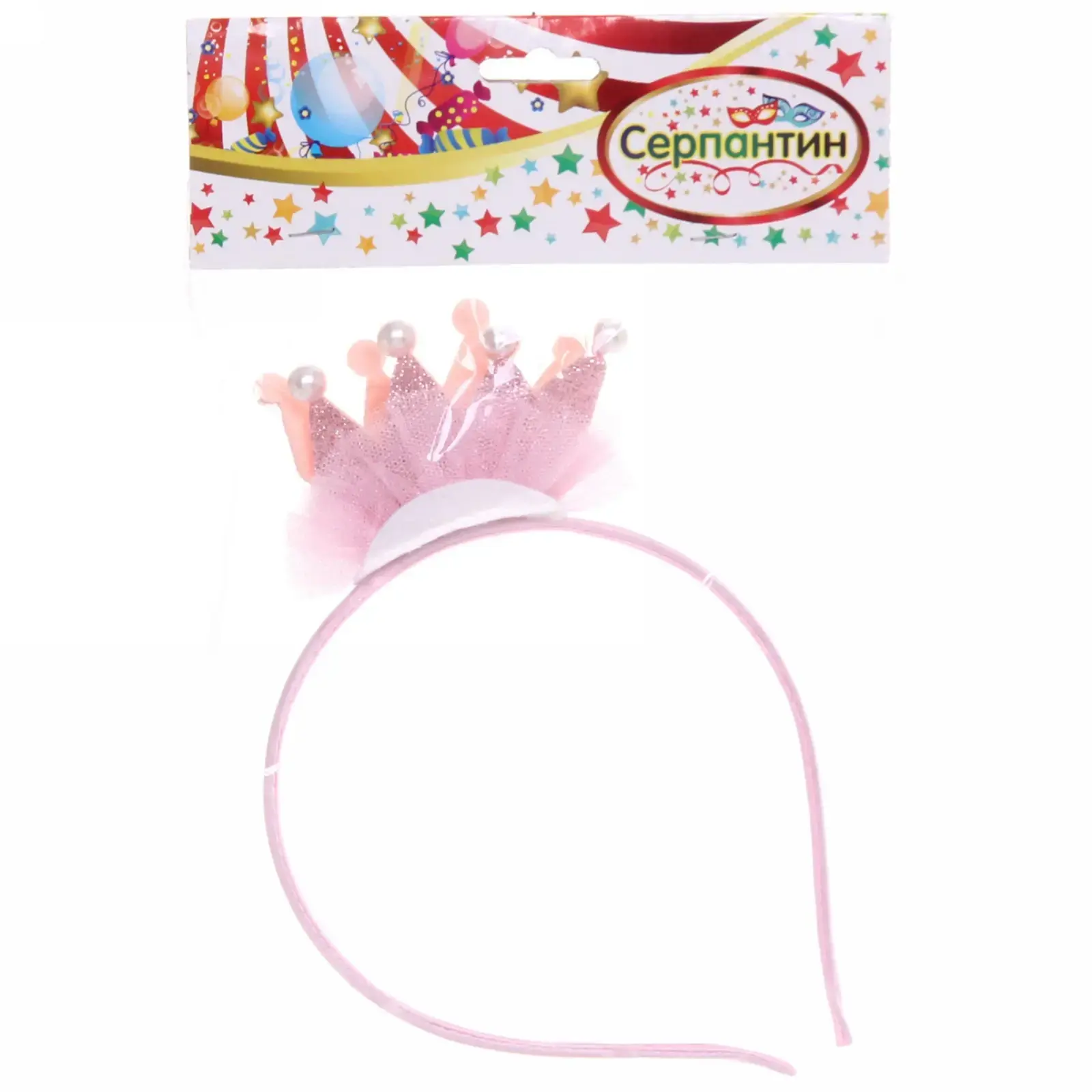 Ободок имеет стандартный размер, что делает его универсальным для большинства детей. Он украшен декоративной короной, выполненной в розовом цвете с блестящими элементами, что придаёт ему праздничный вид. Этот аксессуар станет отличным дополнением к любому костюму и поможет вашему ребенку почувствовать себя настоящей принцессой.