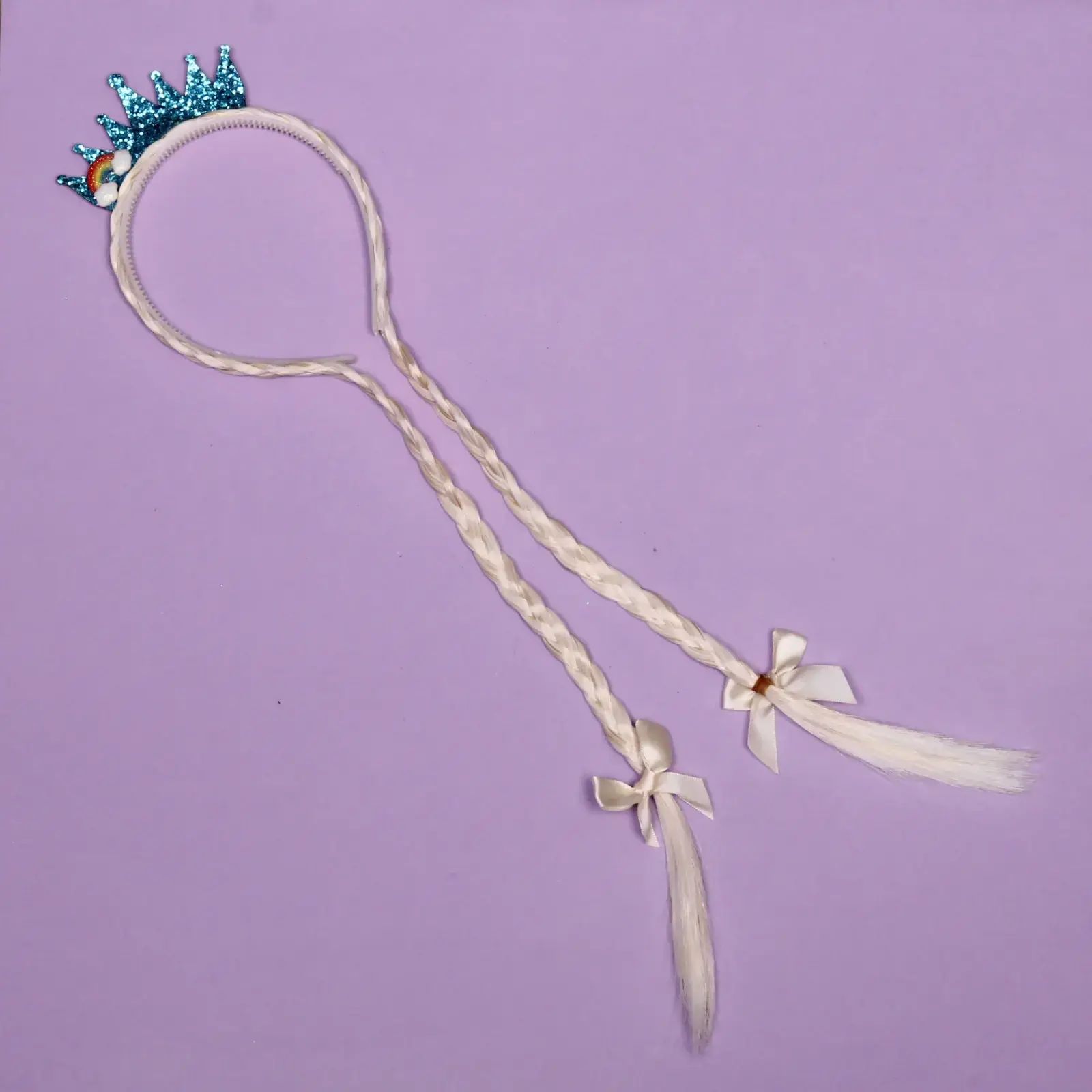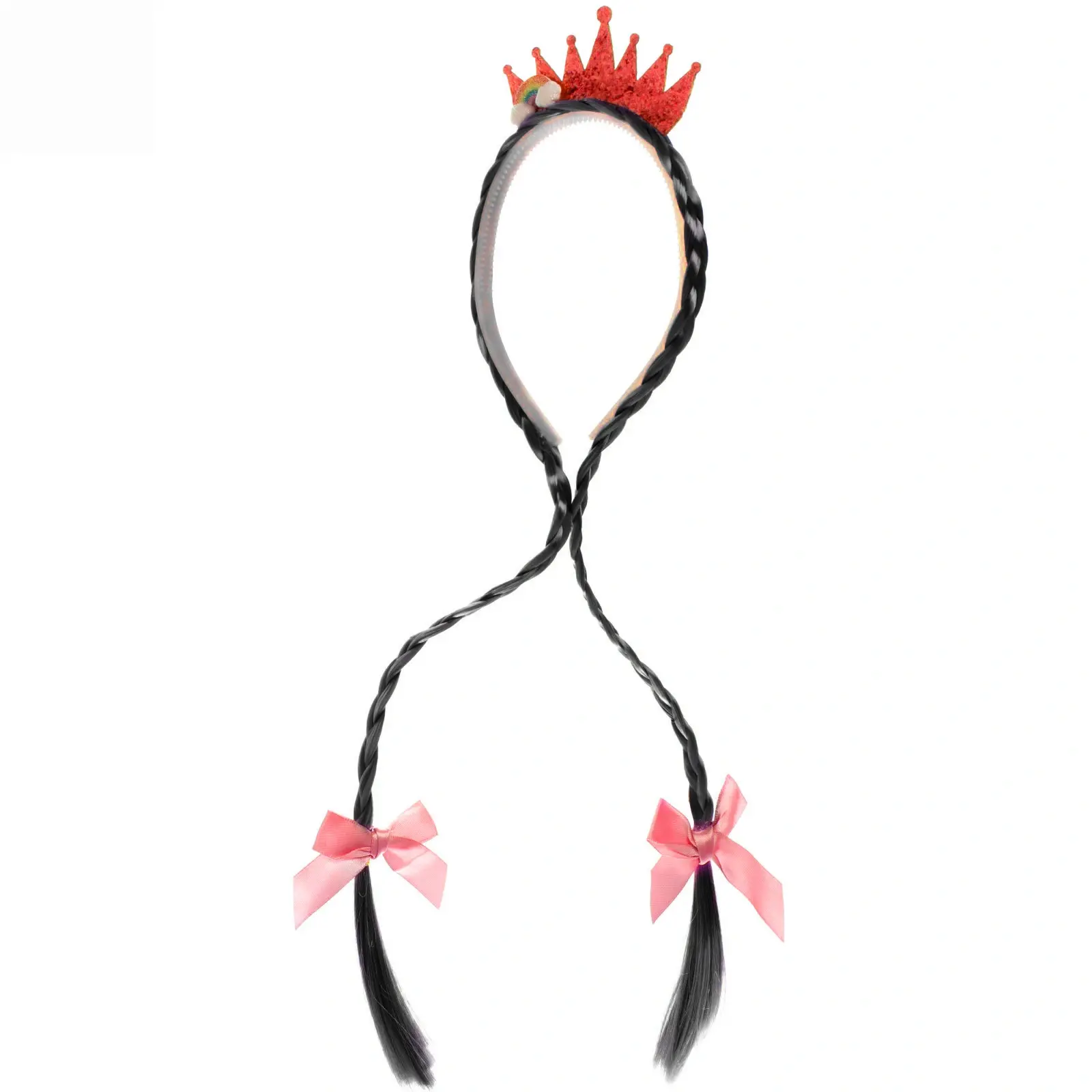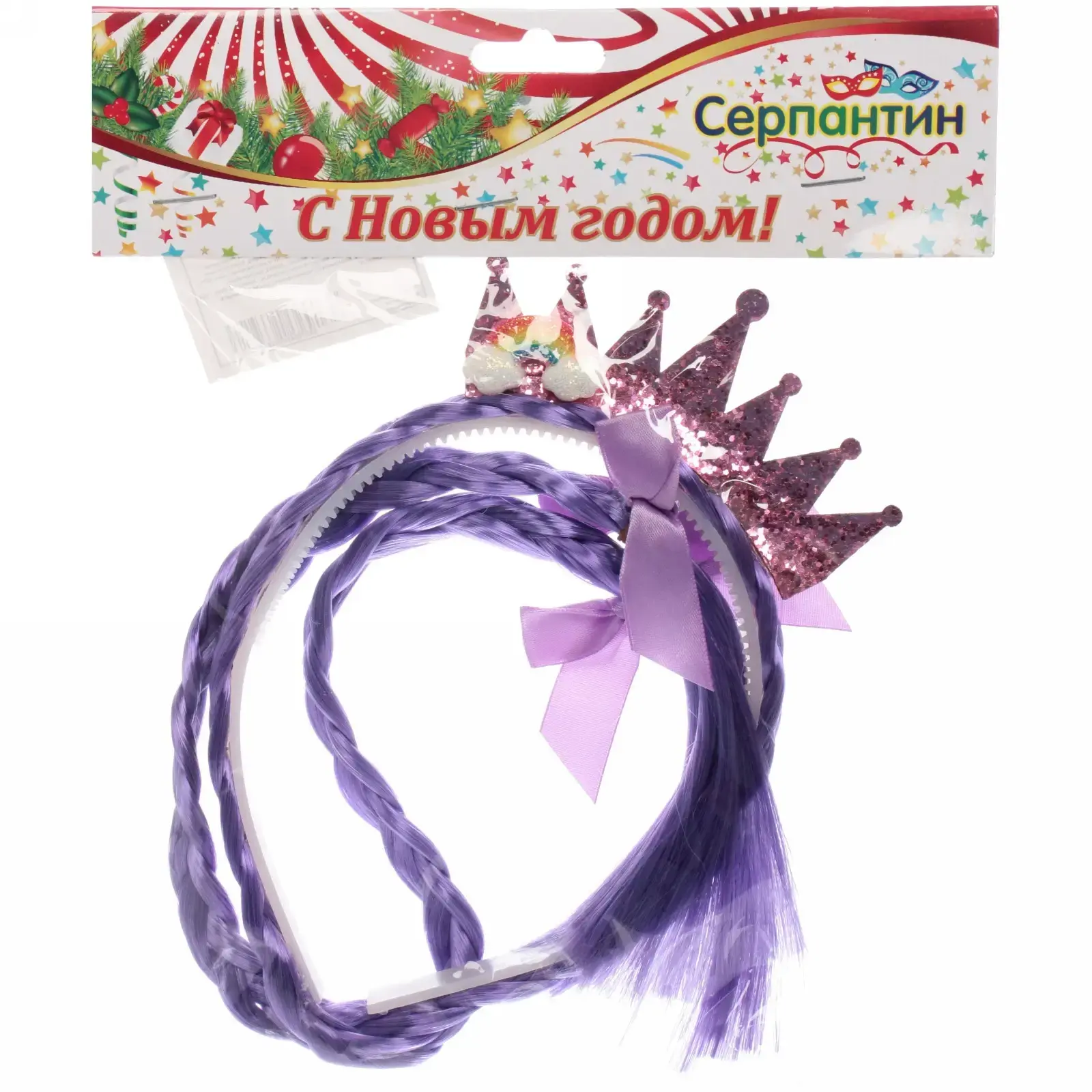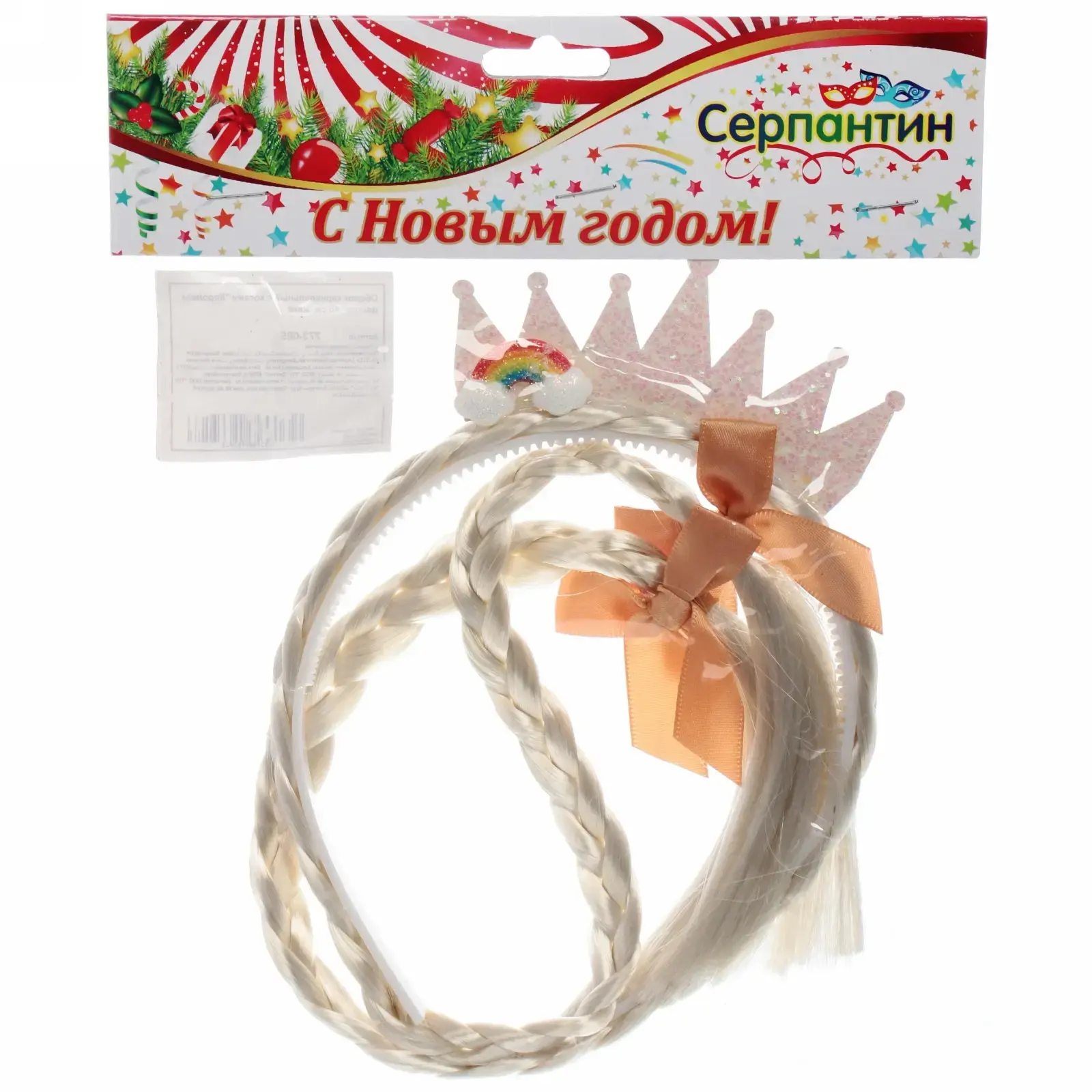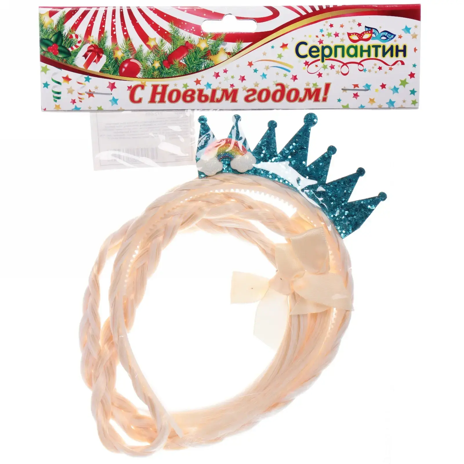 Яркий аксессуар для новогодних утренников, тематических вечеринок и детских костюмов. Легкий ободок с декоративной короной и объемными косами превратит любой наряд в сказочный образ.