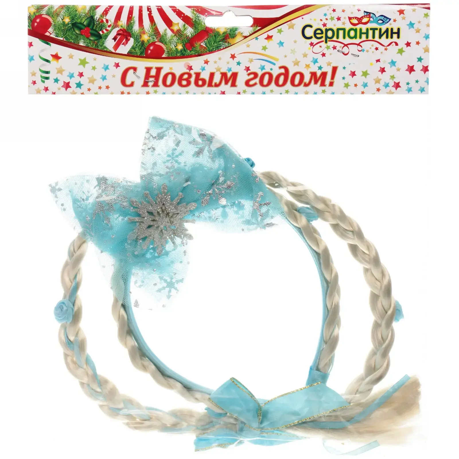 Ободок карнавальный с косичкой «Ледяной бантик»